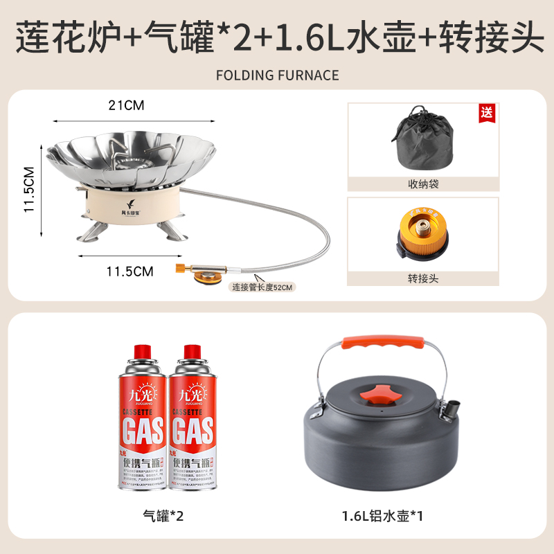 • 로터스 스토브+가스 탱크*2+1.6L 알루미늄 주전자+어댑터