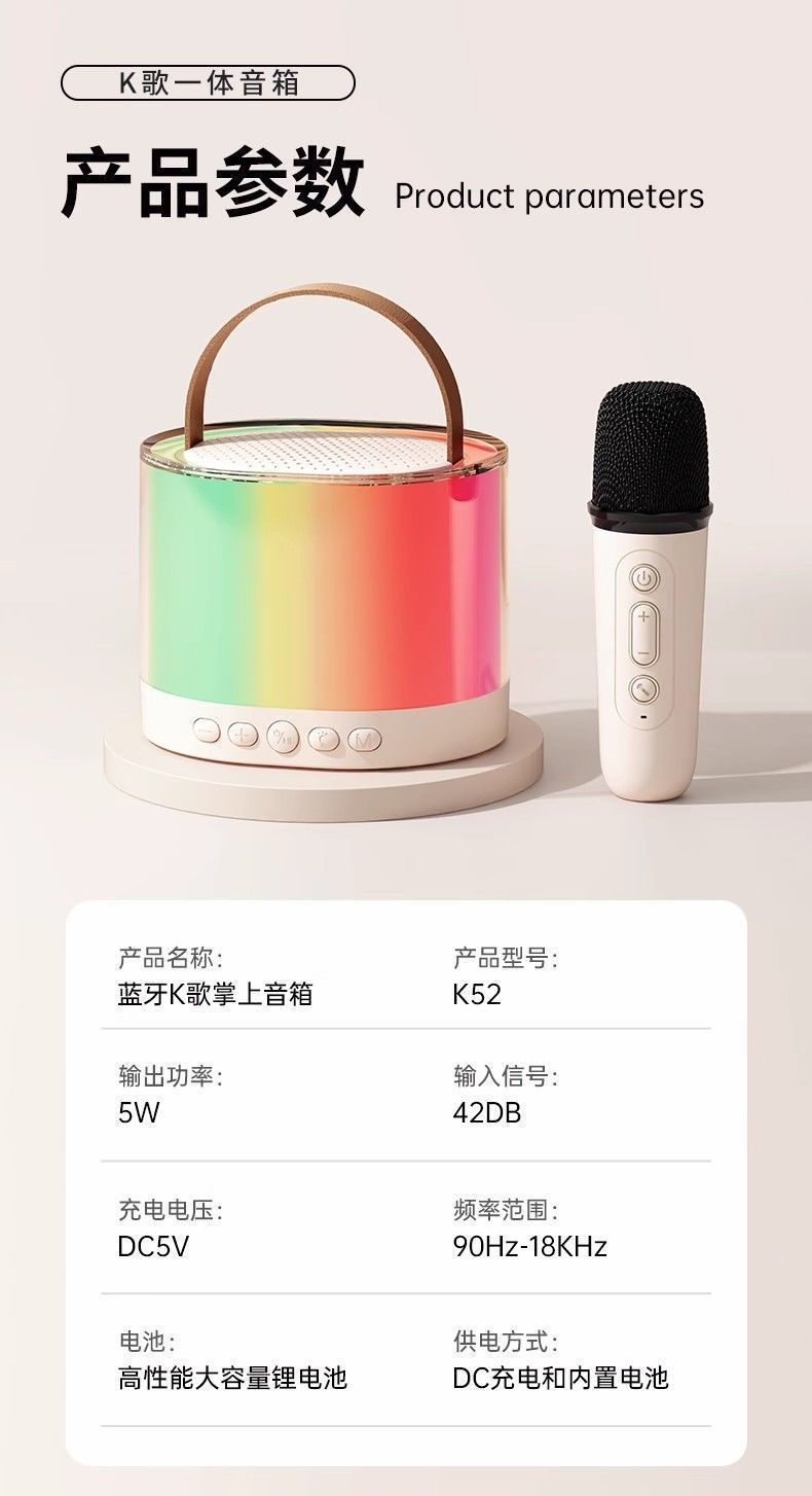K52 오디오 블루투스 무선 노래방 스피커 야외용 마이크 일체형 중저음 스피커 마이크 포함
