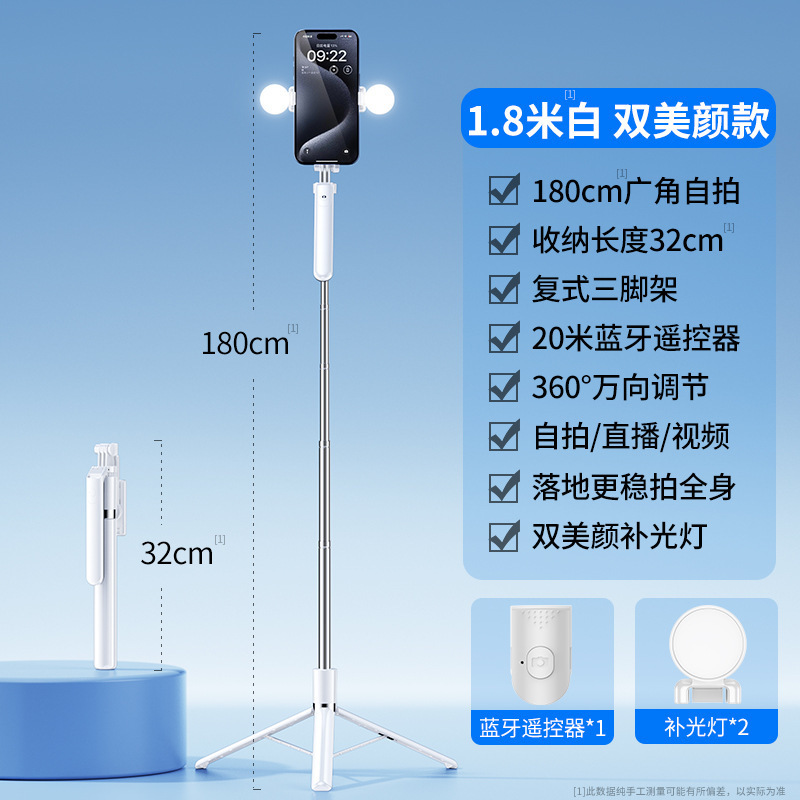 • 흰색 [ 1.8m 손떨림 방지 모델 ] + 뷰티 램프 x1 4축 손떨림 방지 브이로그 및 추적 탄소강 샤프트 블루투스 리모콘