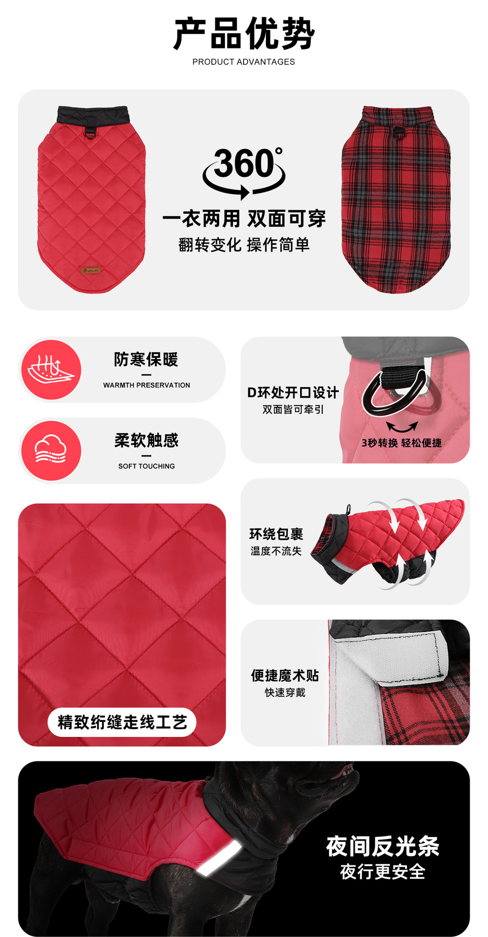 아마존의 가장 인기 있는 개 옷 가을, 겨울 양면 애완 동물 의류 반사 격자 무늬 개 조끼 애완 동물 개 옷스토어 가기