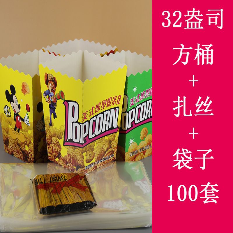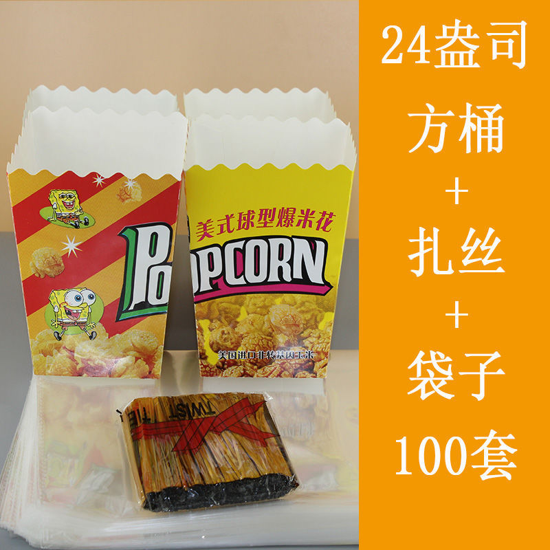 정사각형 팝콘 통 새로운 일회용 접이식 종이컵 243246 미국 영화관 가방