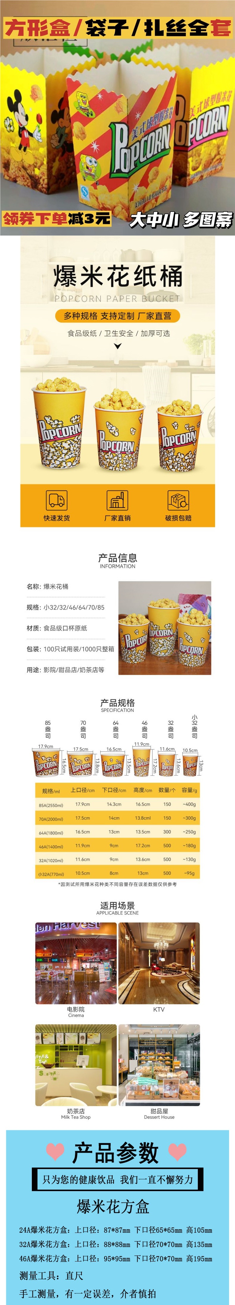 정사각형 팝콘 통 새로운 일회용 접이식 종이컵 243246 미국 영화관 가방스토어 가기