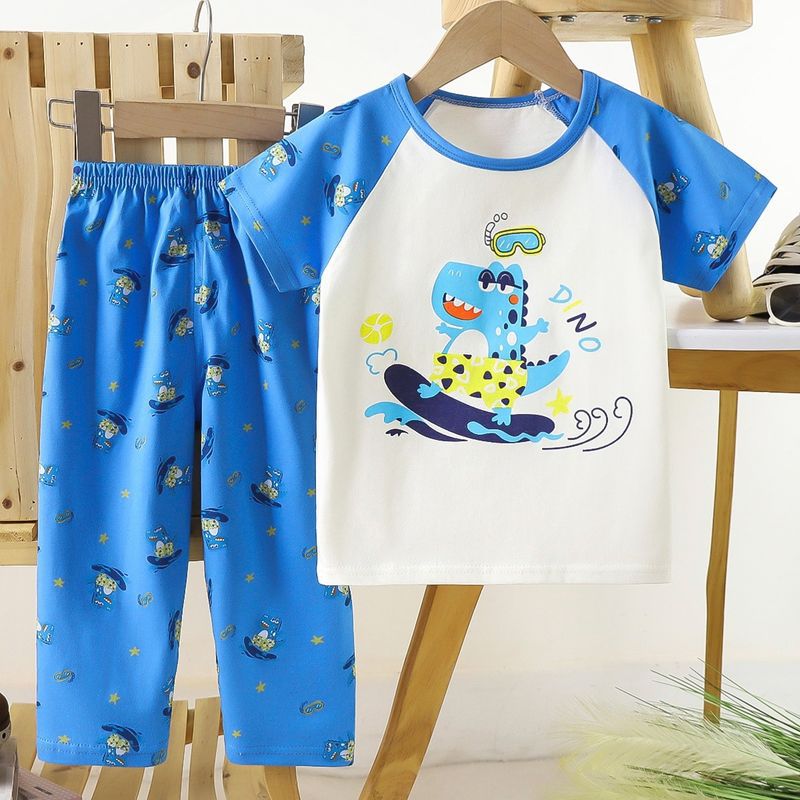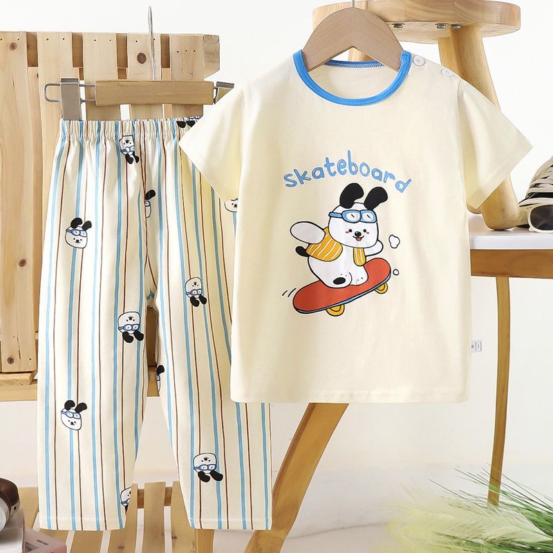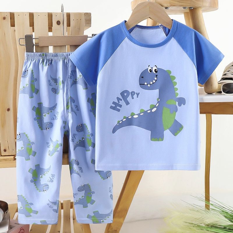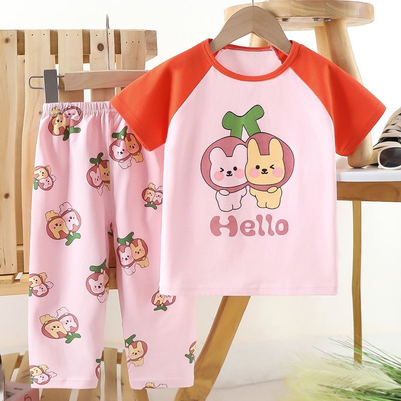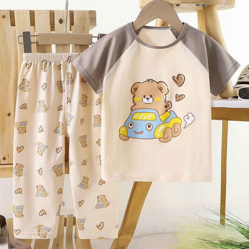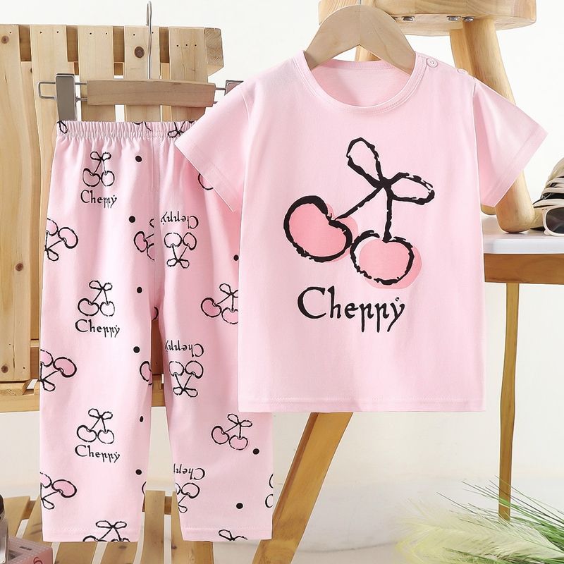 어린이 반팔 양복 면 여름 아기 셔츠 소년 가정 의류 소녀 잠옷 여름 만화-0001