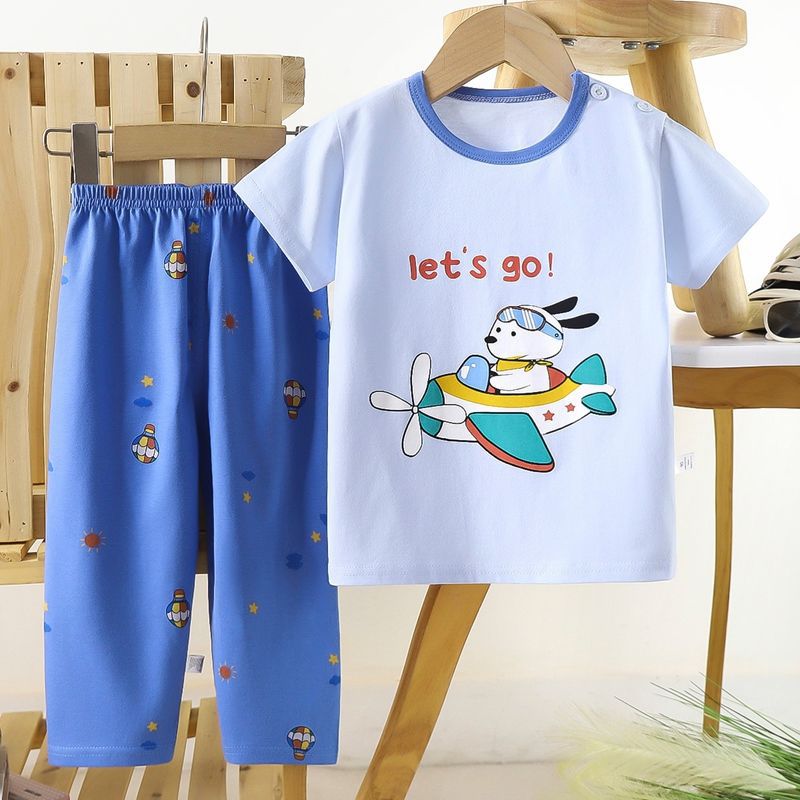 어린이 반팔 양복 면 여름 아기 셔츠 소년 가정 의류 소녀 잠옷 여름 만화-0001스토어 가기