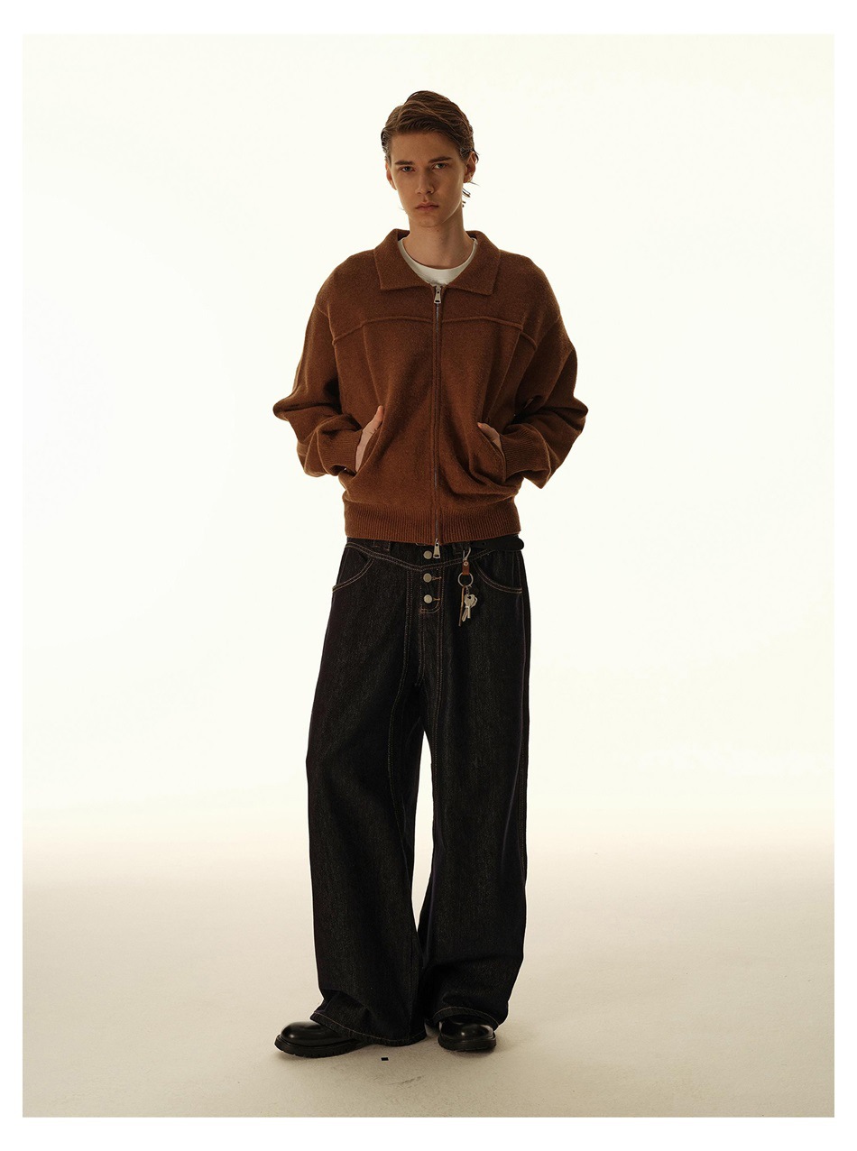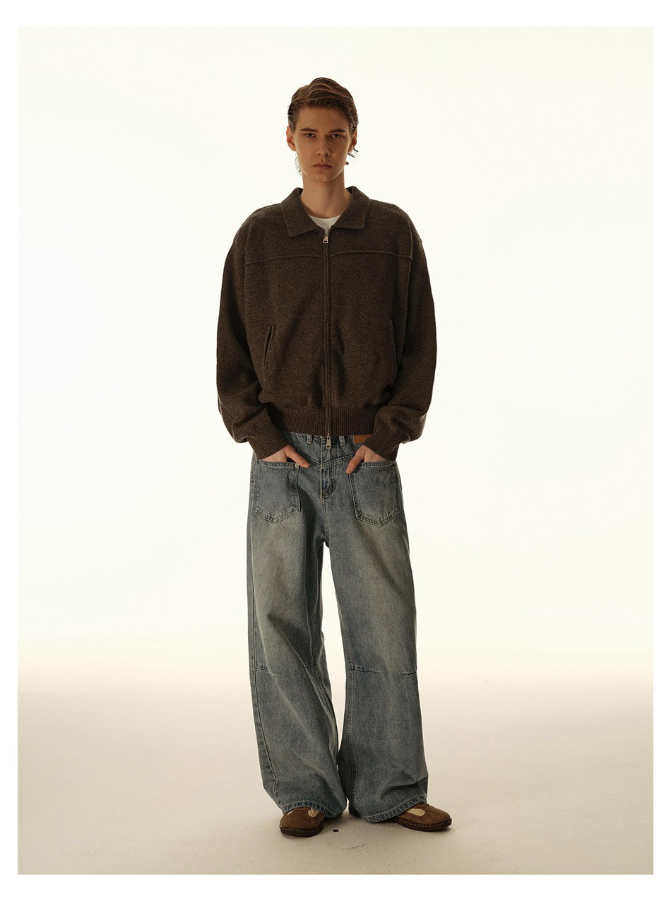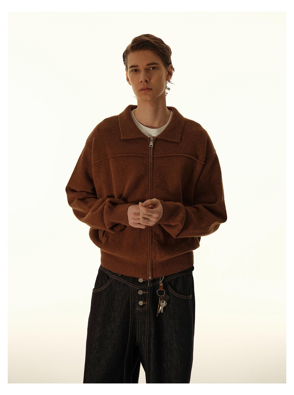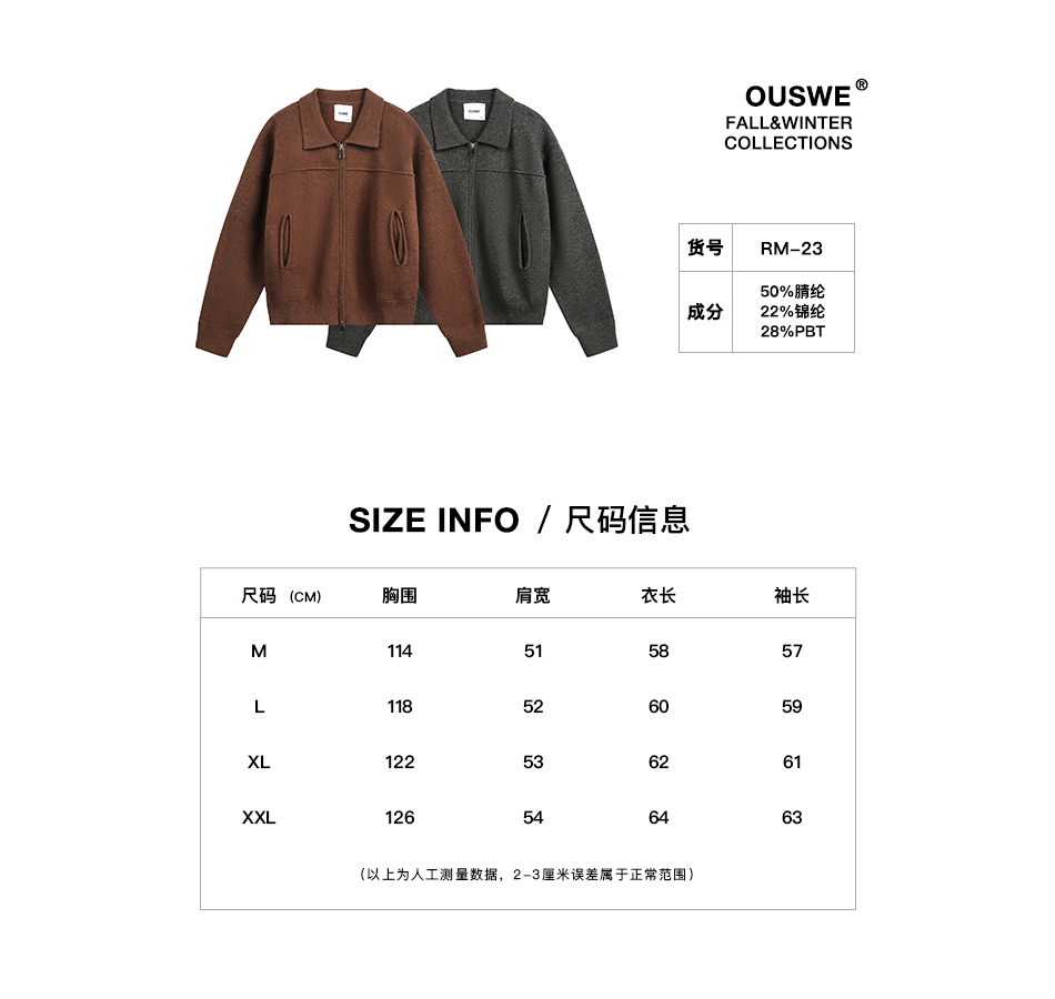 OUSWE 아메리칸 레트로 스웨터 남성용 지퍼 카디건 커플 가을, 겨울 스웨터 심플 하이 엔드 재킷 RM23스토어 가기