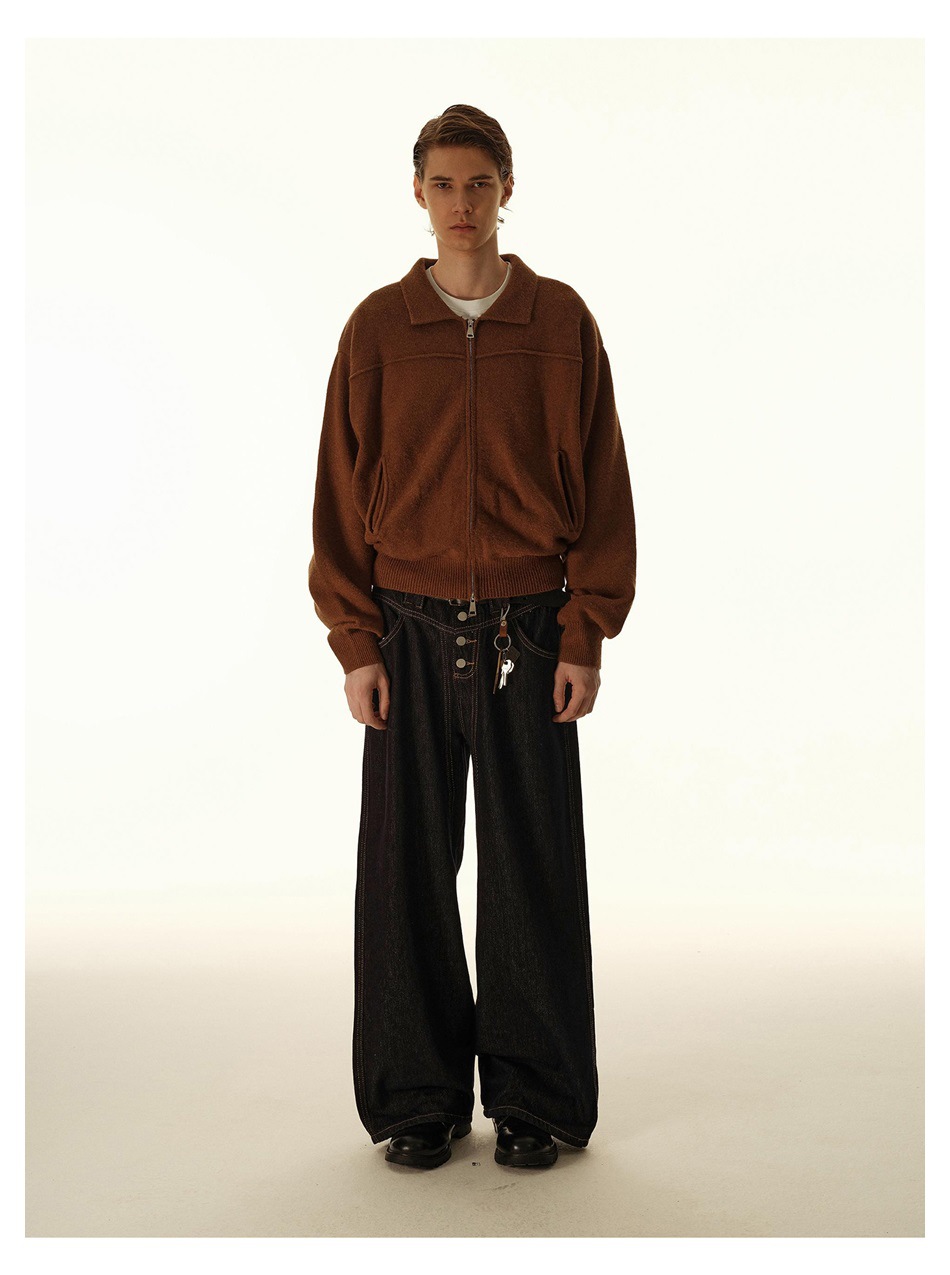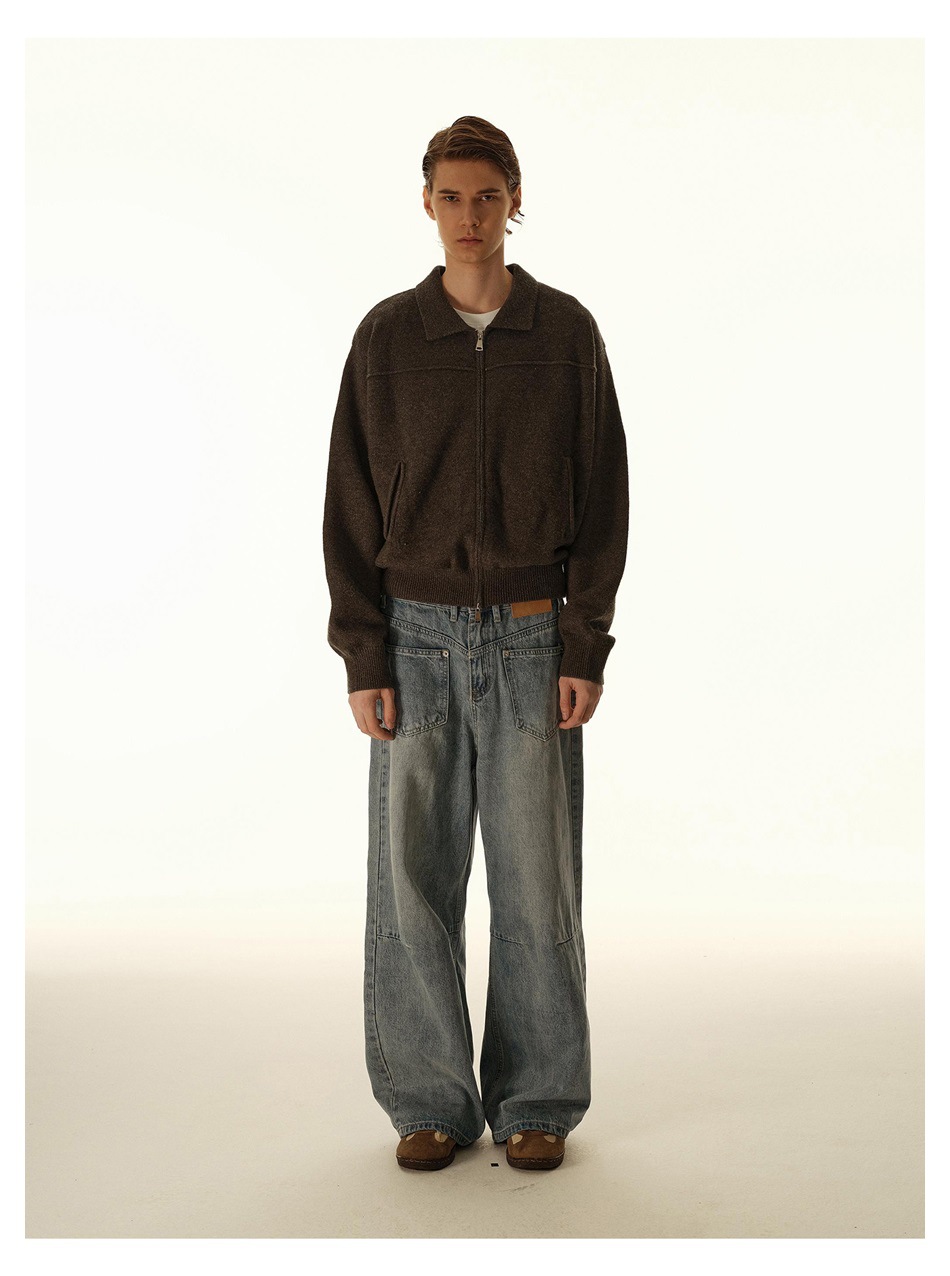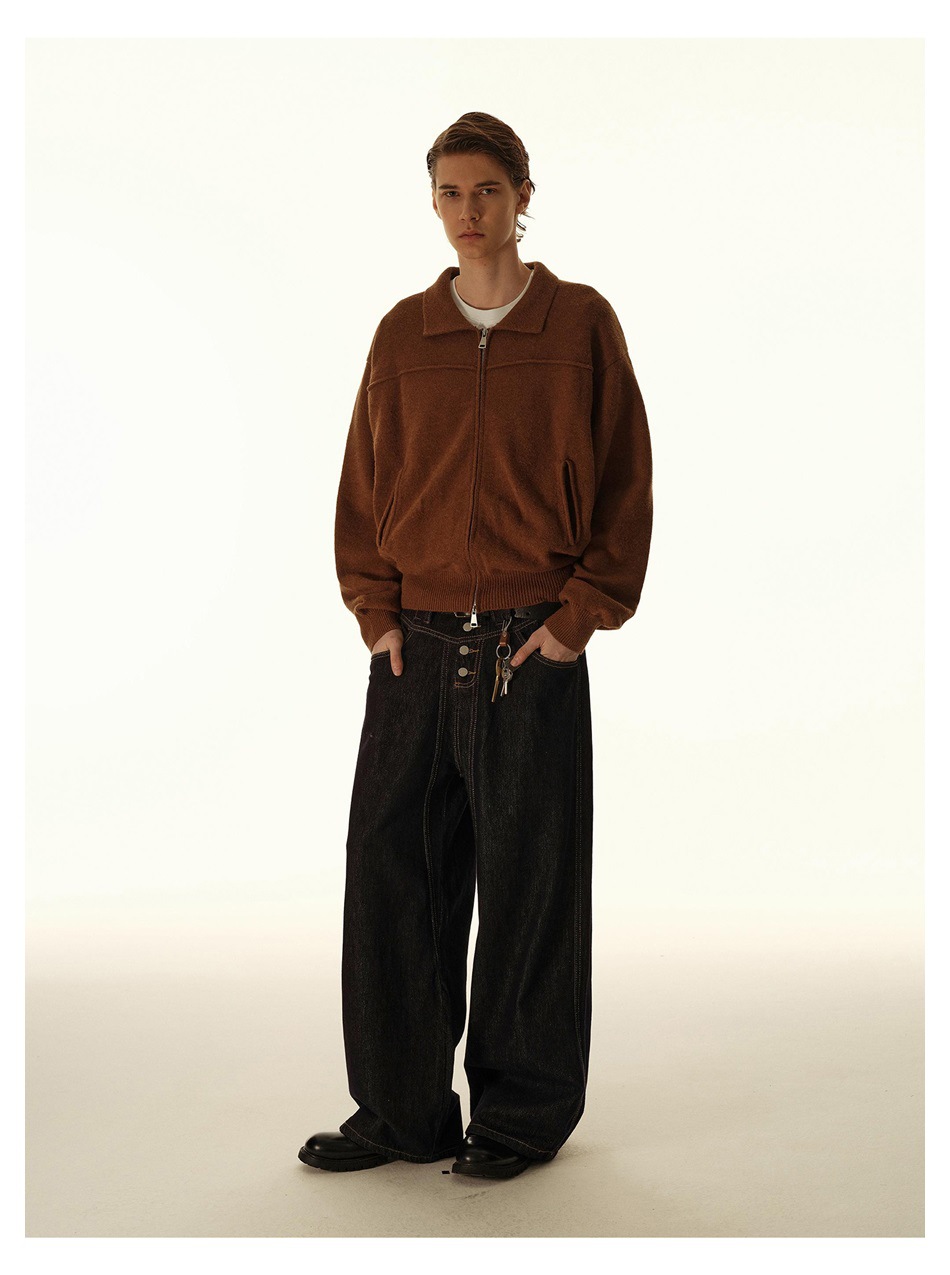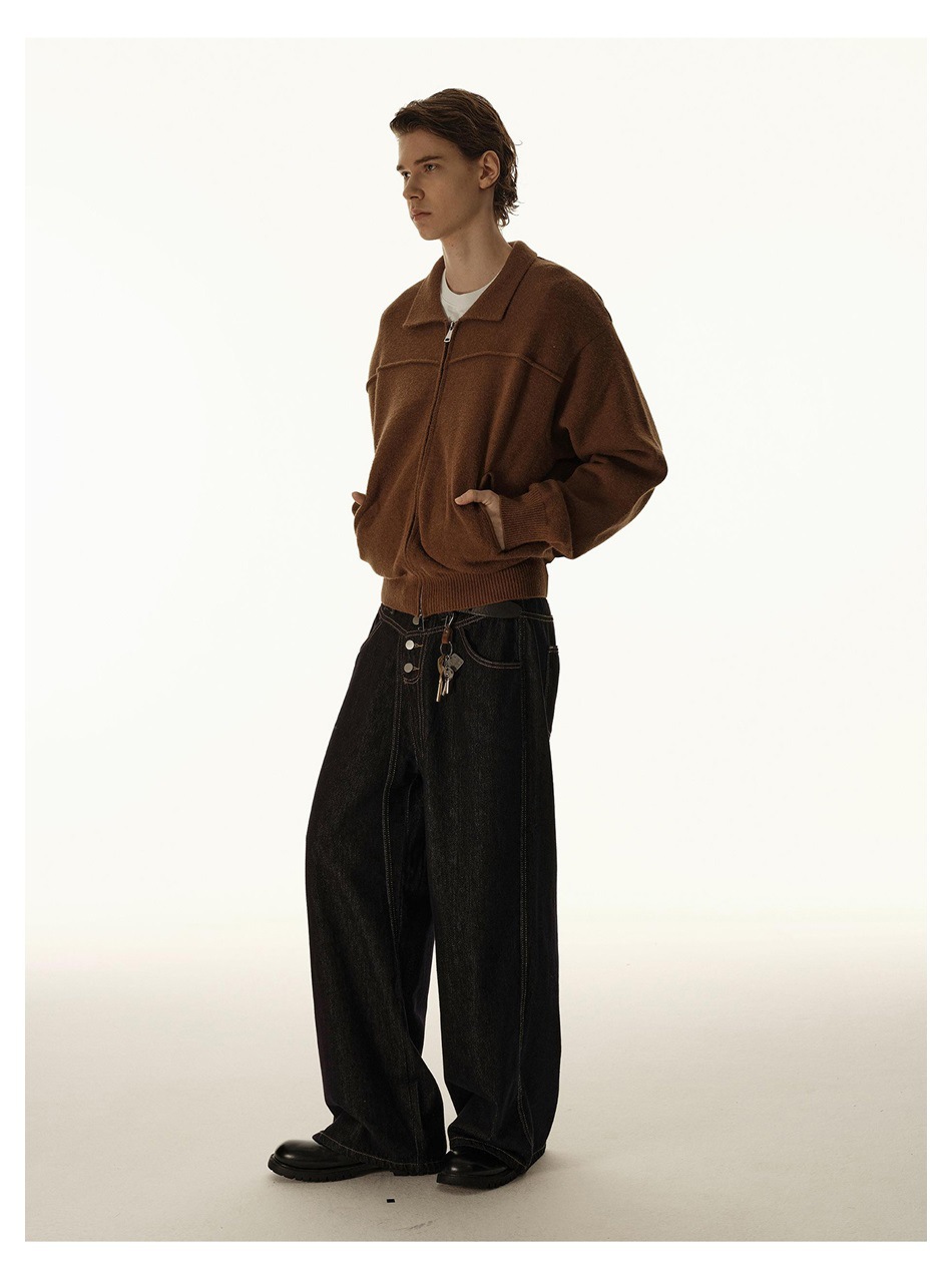 OUSWE 아메리칸 레트로 스웨터 남성용 지퍼 카디건 커플 가을, 겨울 스웨터 심플 하이 엔드 재킷 RM23스토어 가기