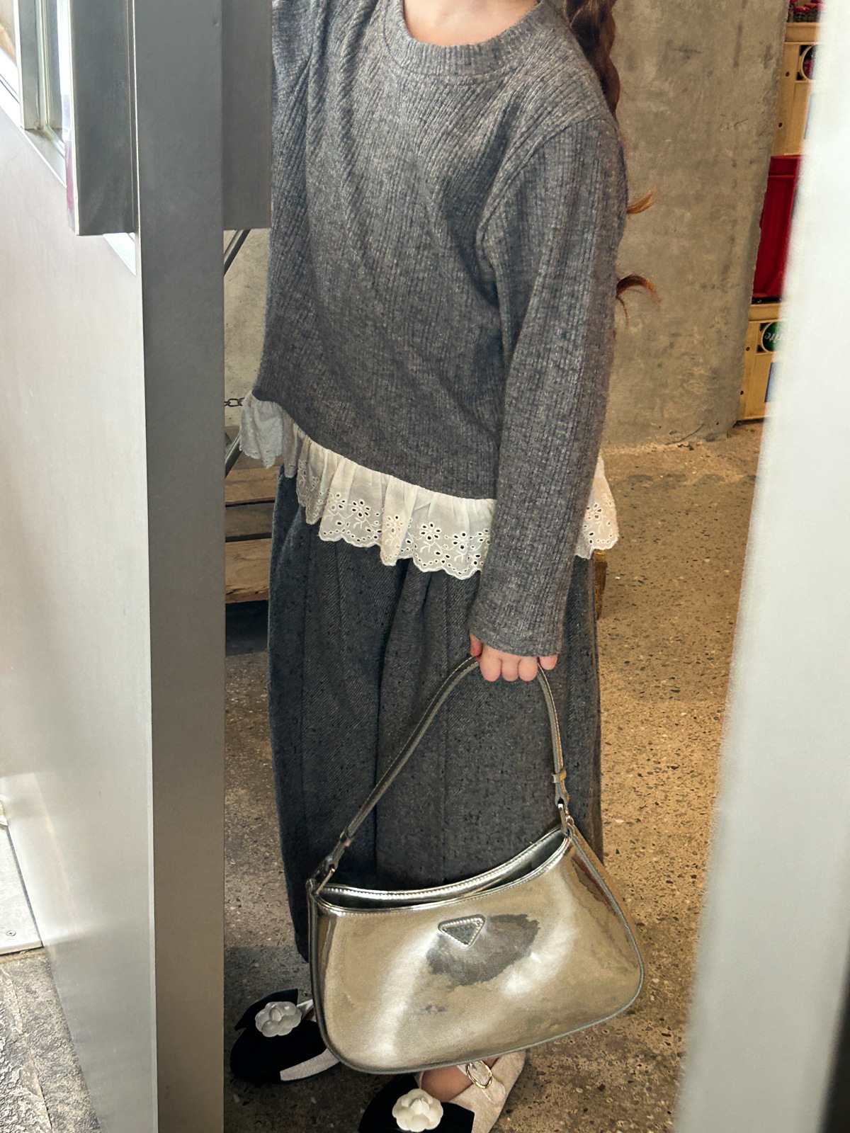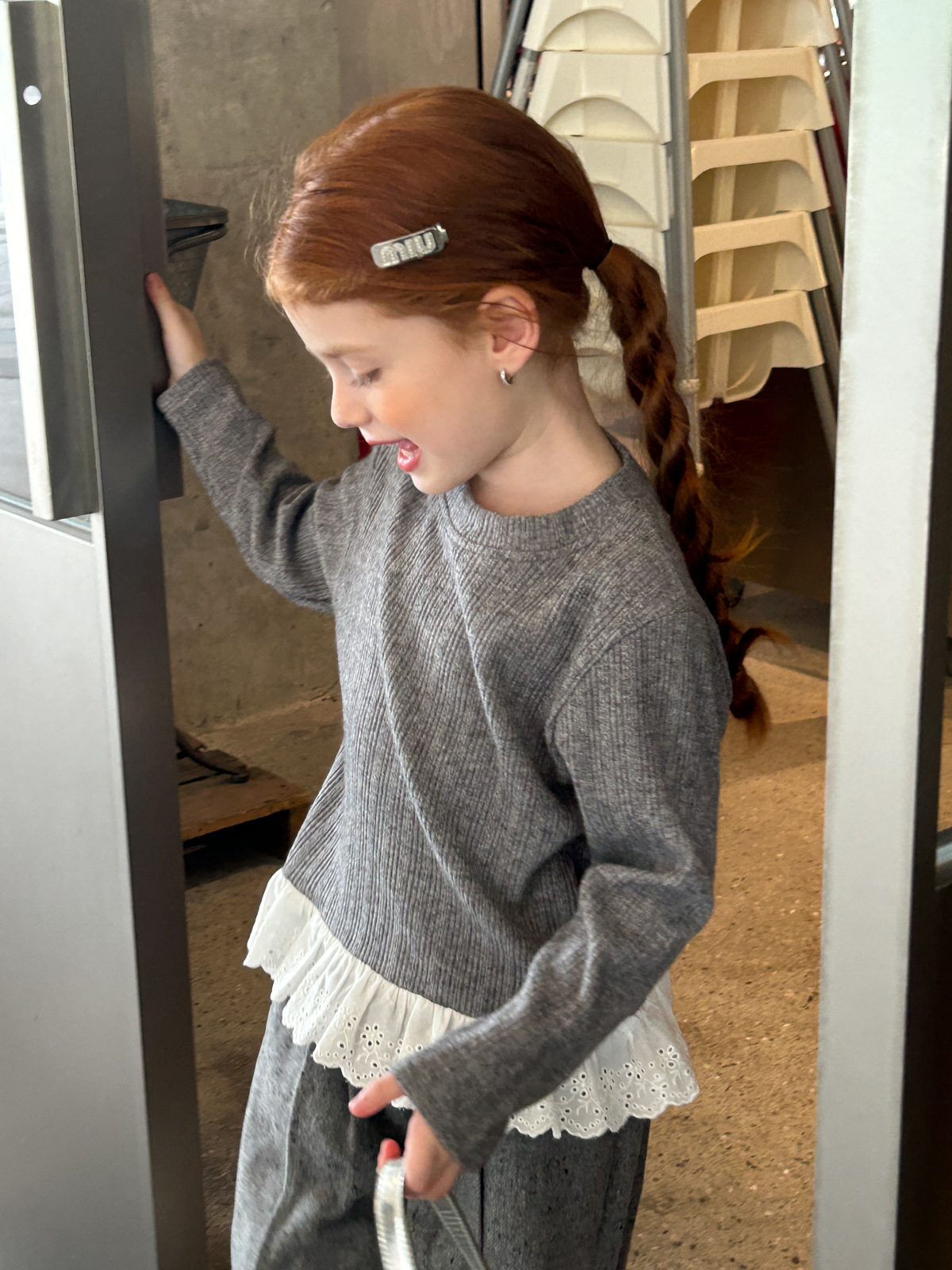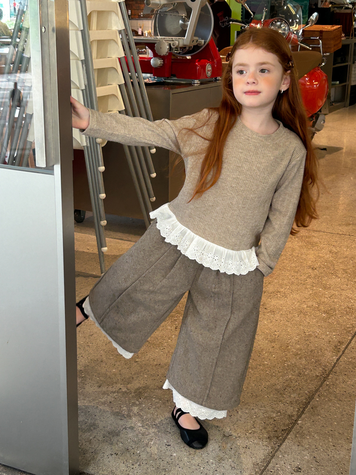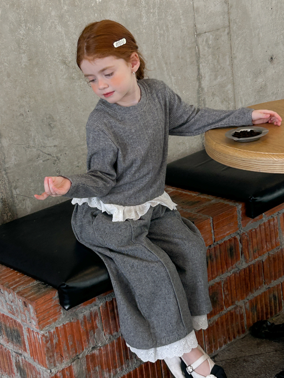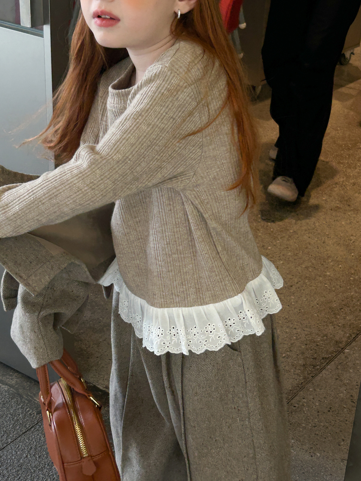 2025 새로운 가을 코튼 라운드 넥 긴팔 셔츠 여자 아동복 패션 스플 라이스 레이스 스위트 티셔츠스토어 가기
