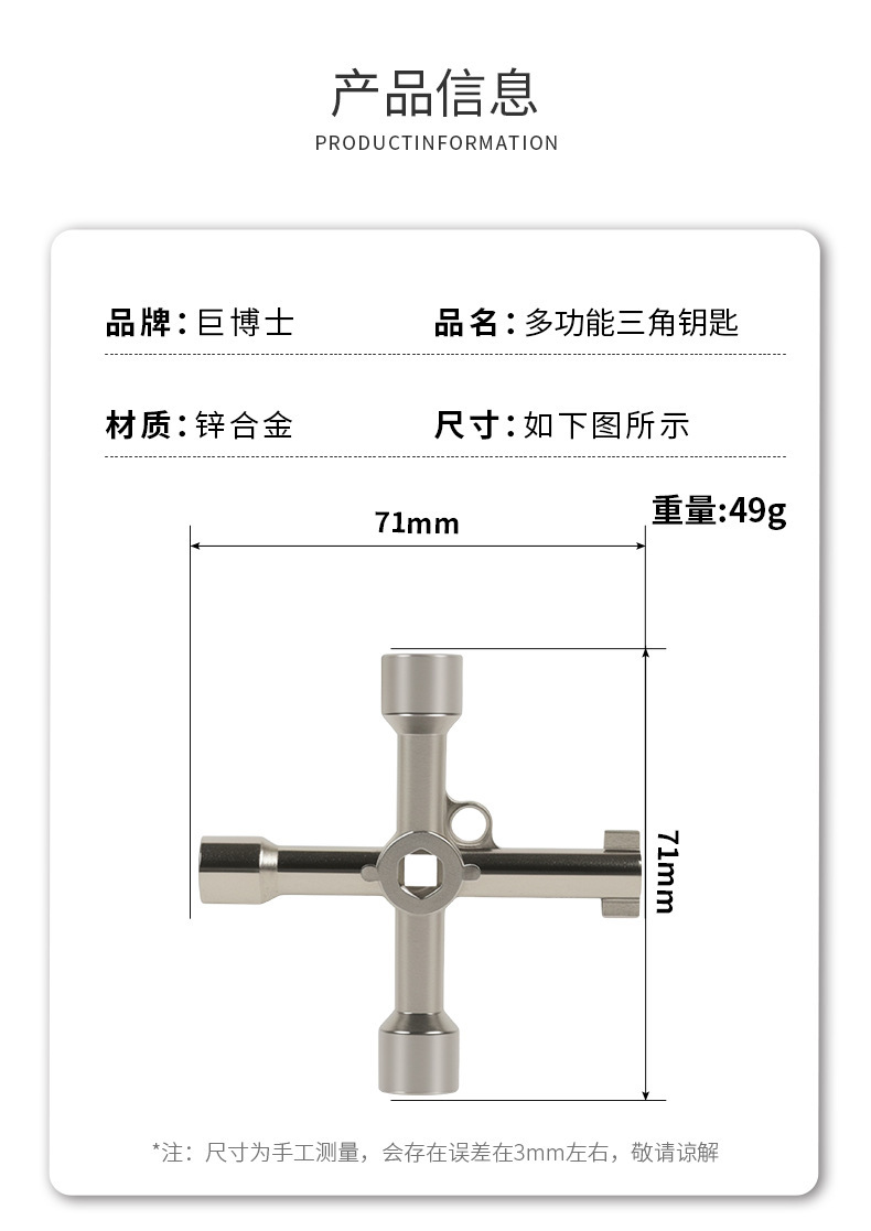 전기 제어 캐비닛 자동차 엘리베이터 십자 키 렌치 수량계 밸브 키 내부 삼각형 렌치 다목적 도구스토어 가기