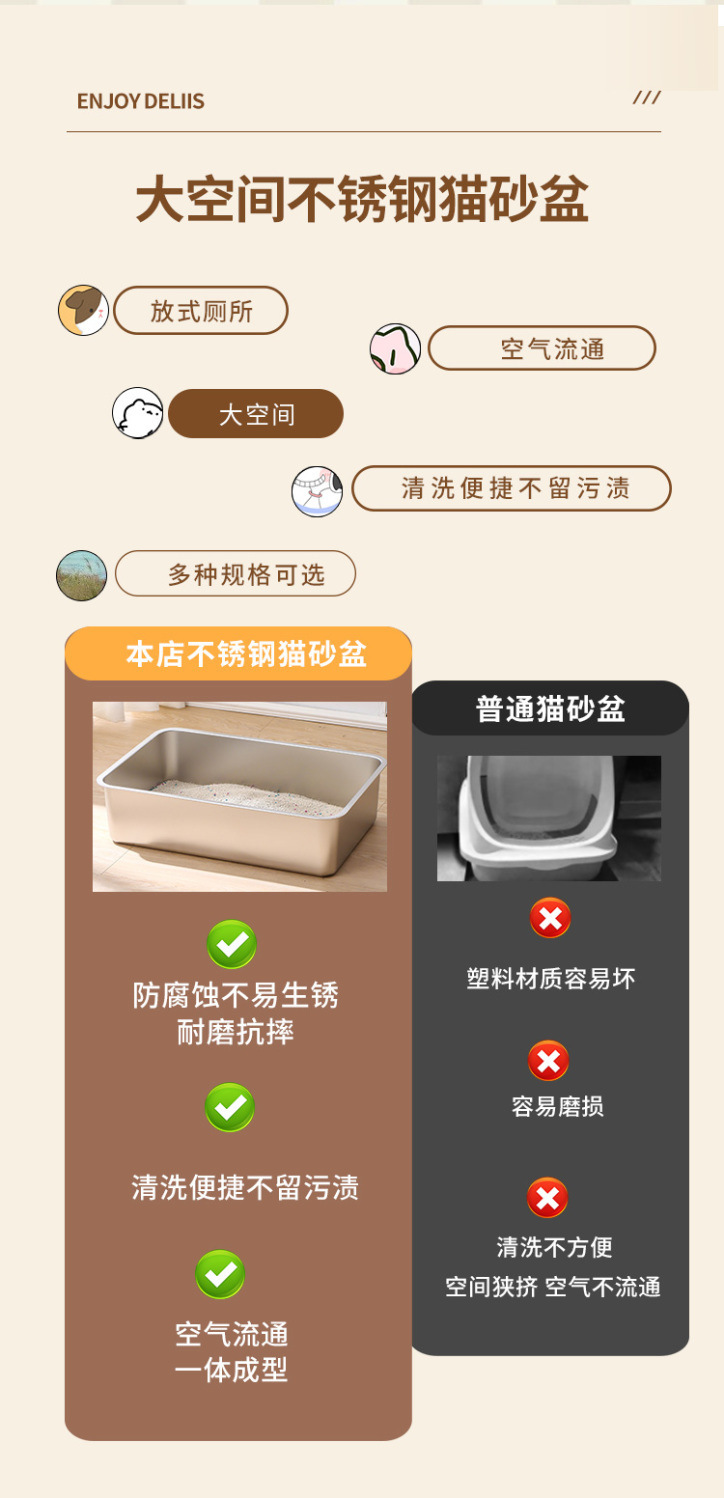 스테인레스 스틸 가정용 초대형 고양이 쓰레기 상자, 강화된 고양이 화장실, 물 튀김 방지, 청소가 쉬운 고양이 특수 제품스토어 가기