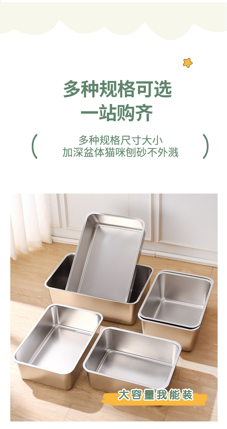 스테인레스 스틸 가정용 초대형 고양이 쓰레기 상자, 강화된 고양이 화장실, 물 튀김 방지, 청소가 쉬운 고양이 특수 제품