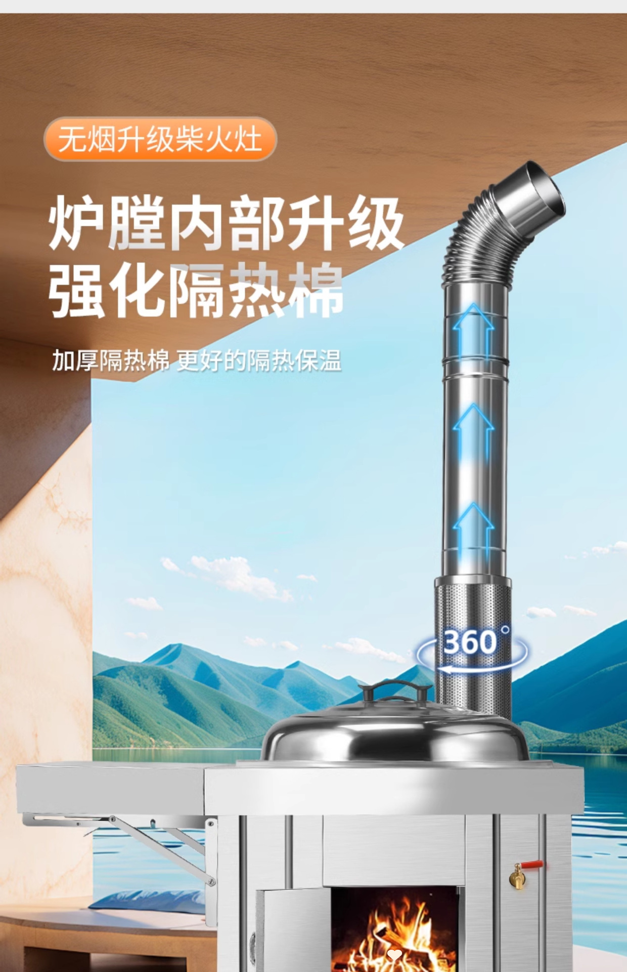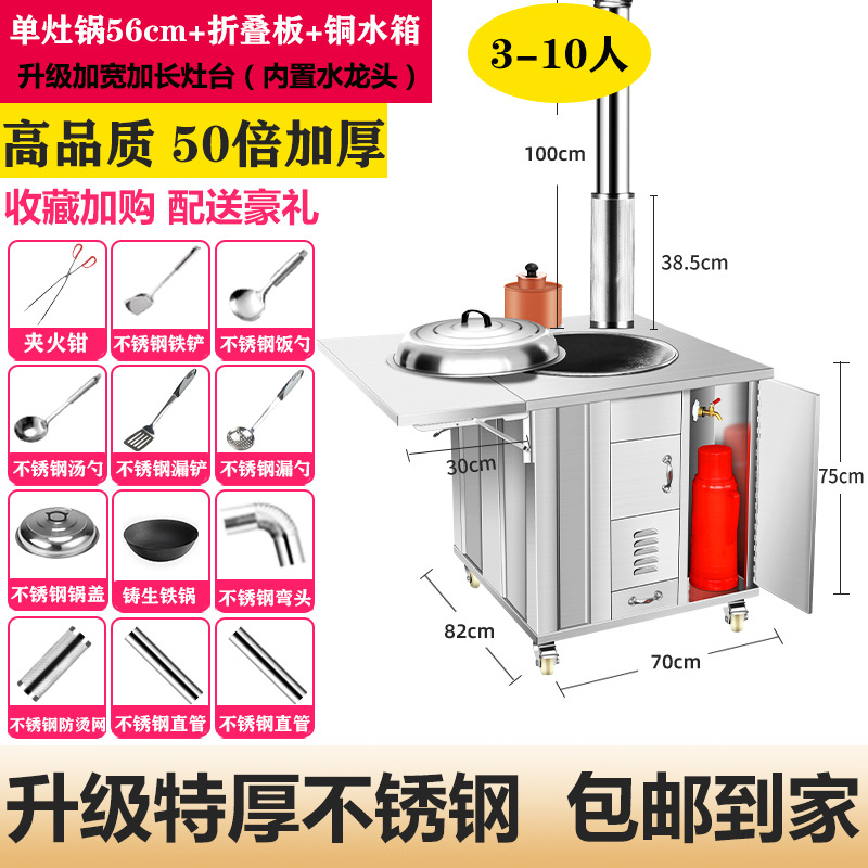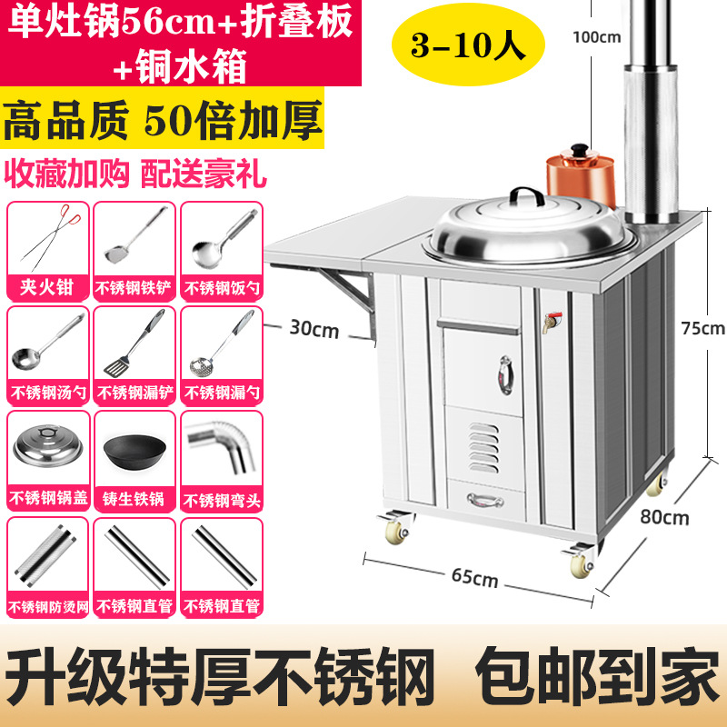 • 플래그십 304 업그레이드 6cm 솔리드 초두꺼운 56cm 싱글 스토브 + 접이식 보드 + 구리 물 탱크 (고품질) &