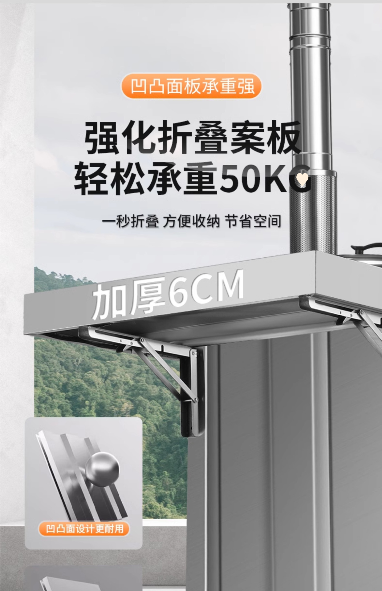 • 플래그십 304 업그레이드된 6cm 솔리드 초두꺼움 50cm 싱글스토브 + 접이식판(고급) &