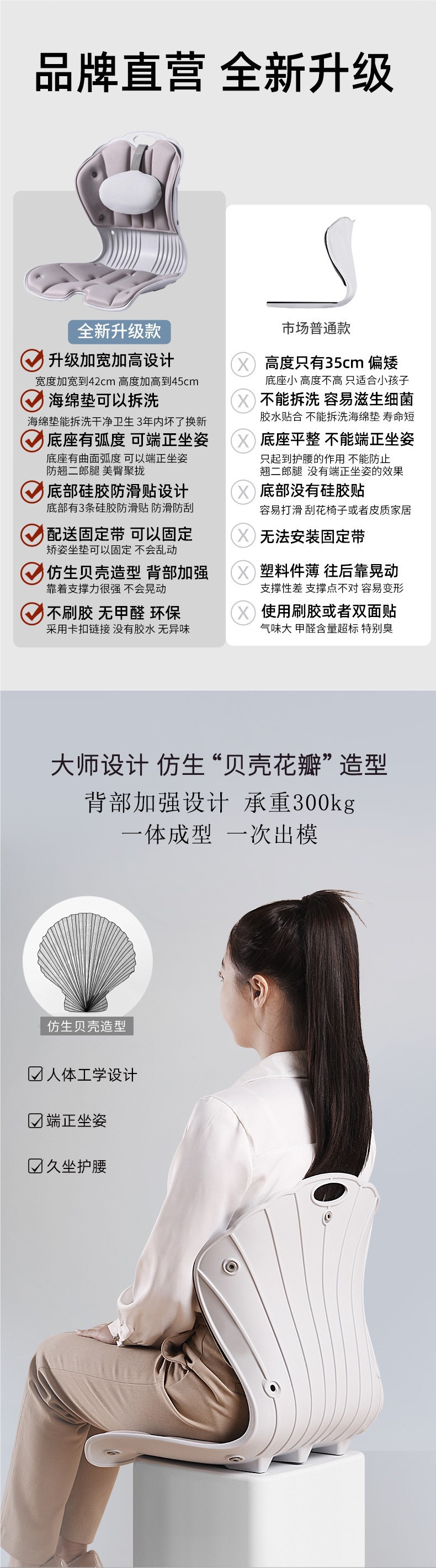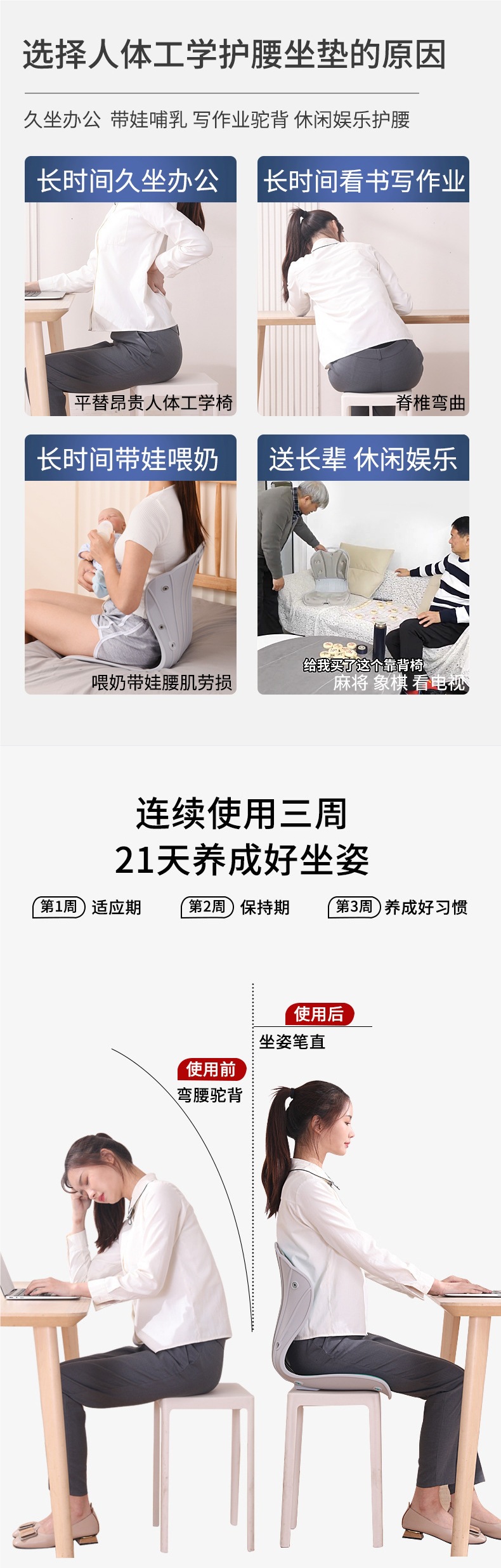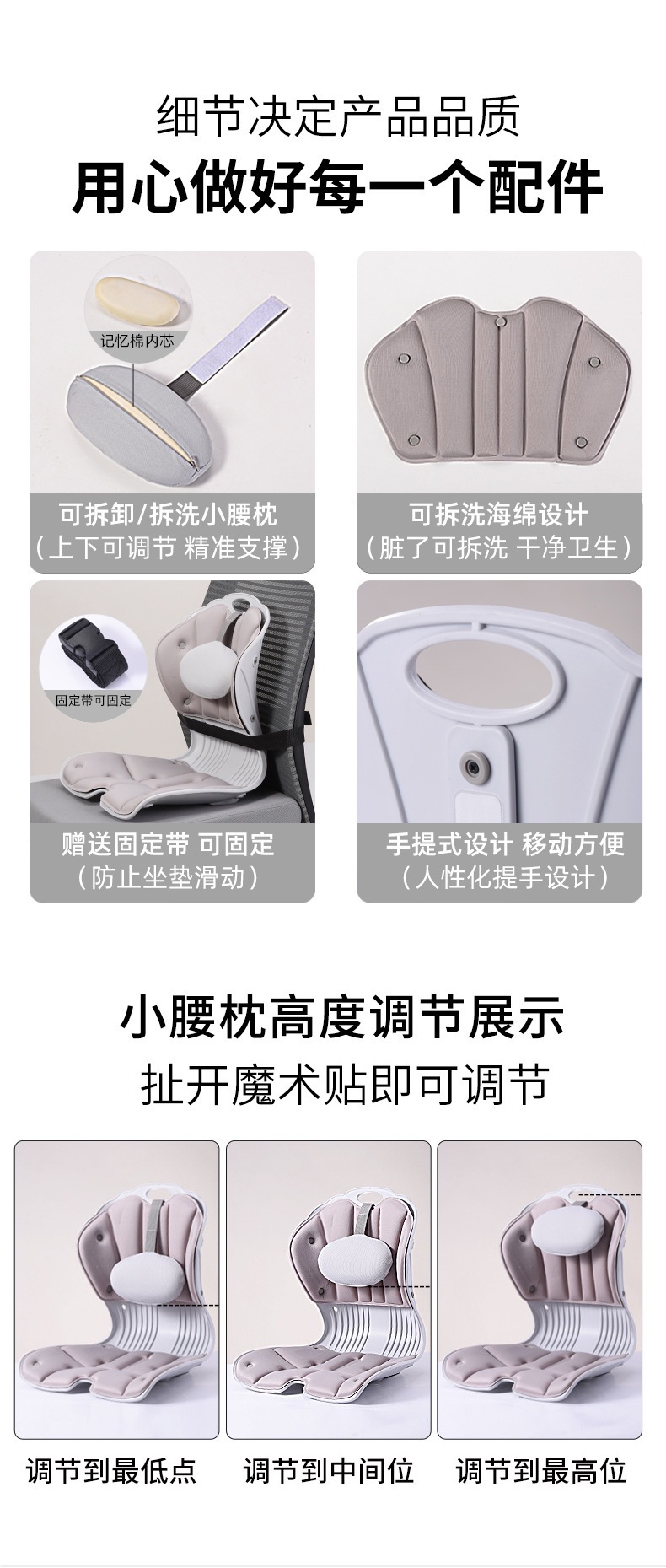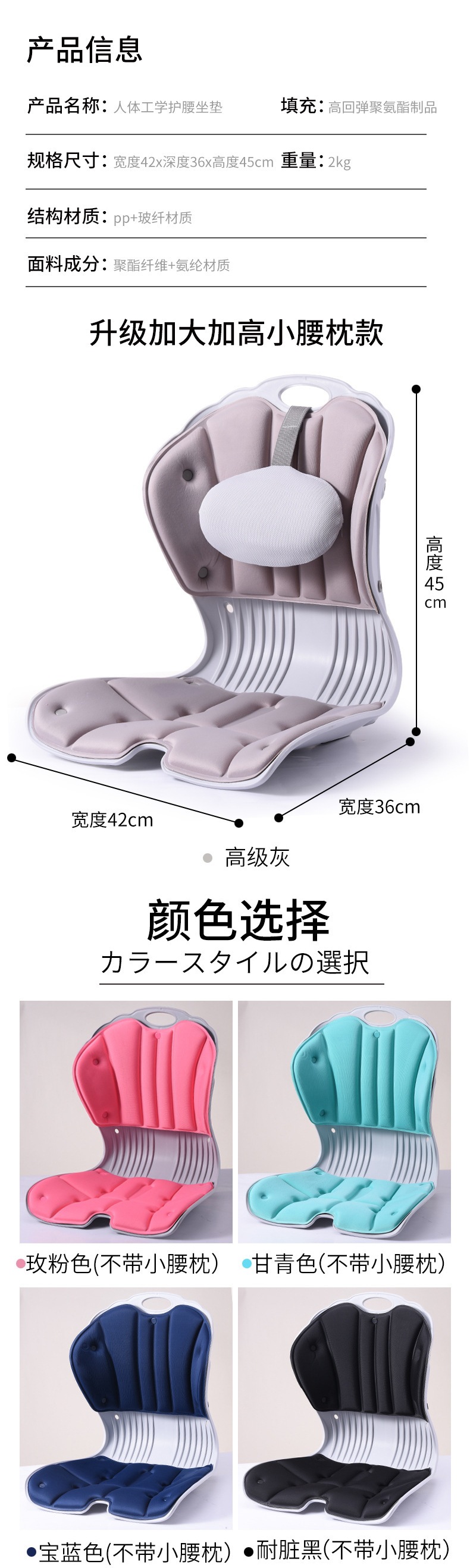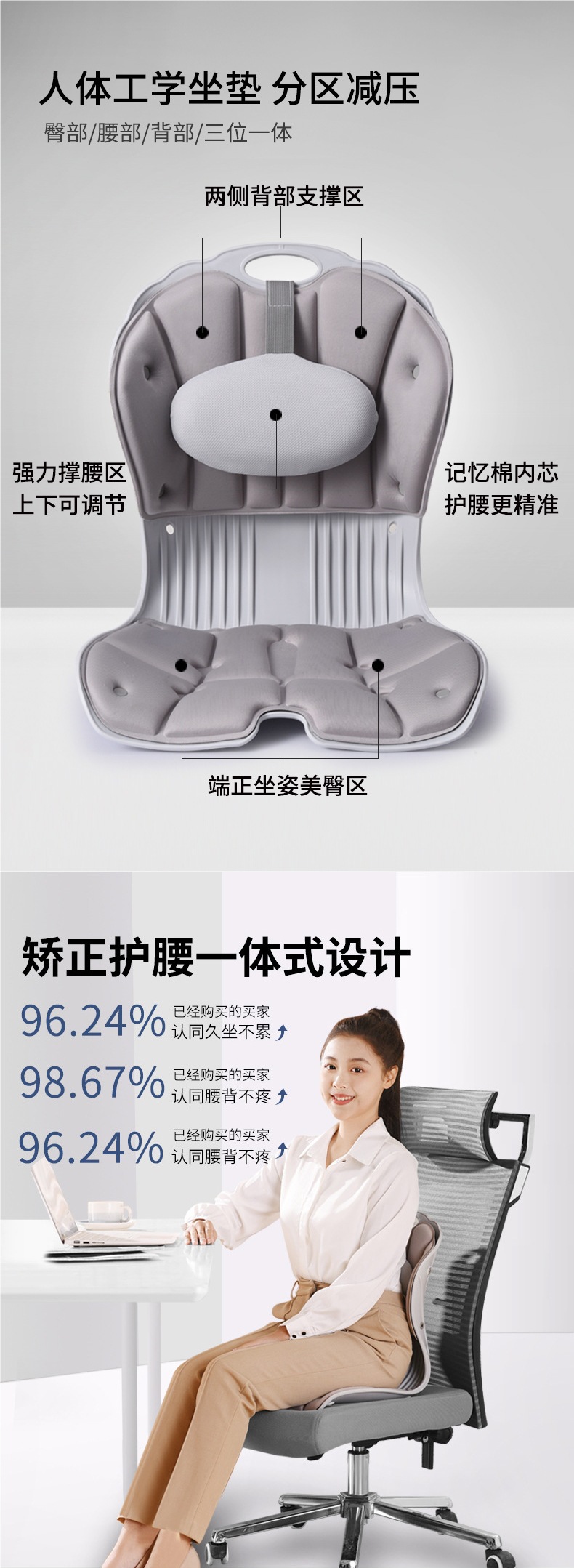 인체공학적 허리쿠션, 사무실 장시간 앉아도 피곤하지 않은 등받이 일체형 쿠션, 자세교정 의자쿠션, 허리보호 쿠션