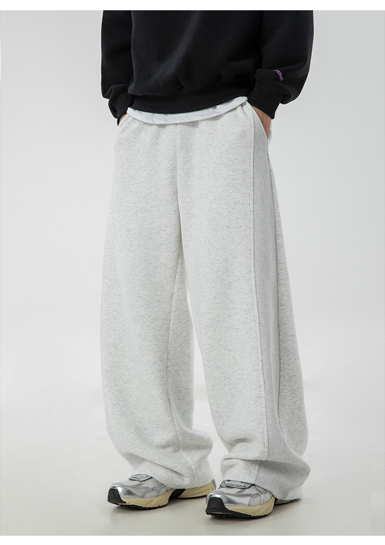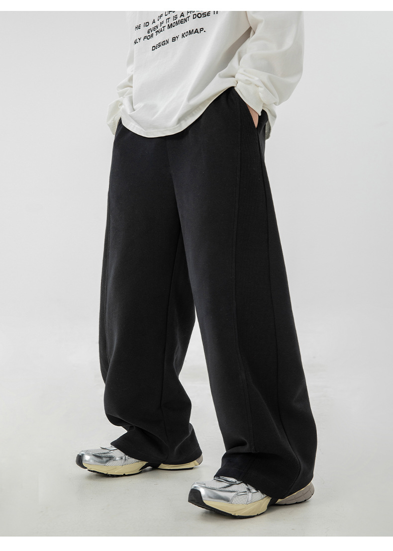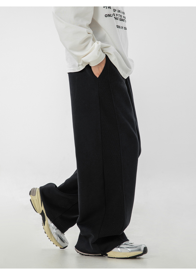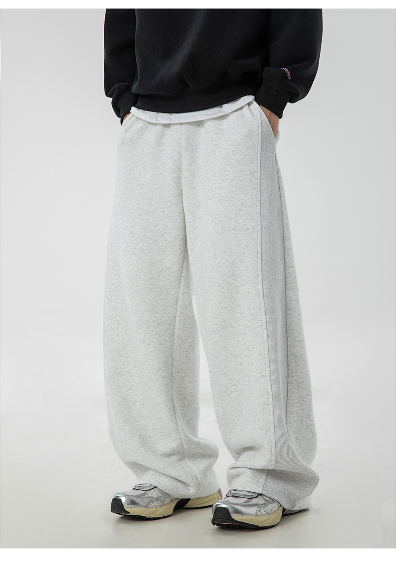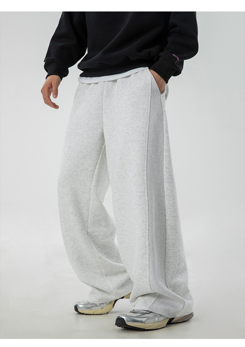사이드 패널 디자인의 스트레이트 캐주얼 팬츠, 가을 신상 헤비웨이트 루즈핏 드레이프 롱 팬츠, 트렌디 브랜드 스포츠 트레이닝 팬츠 q