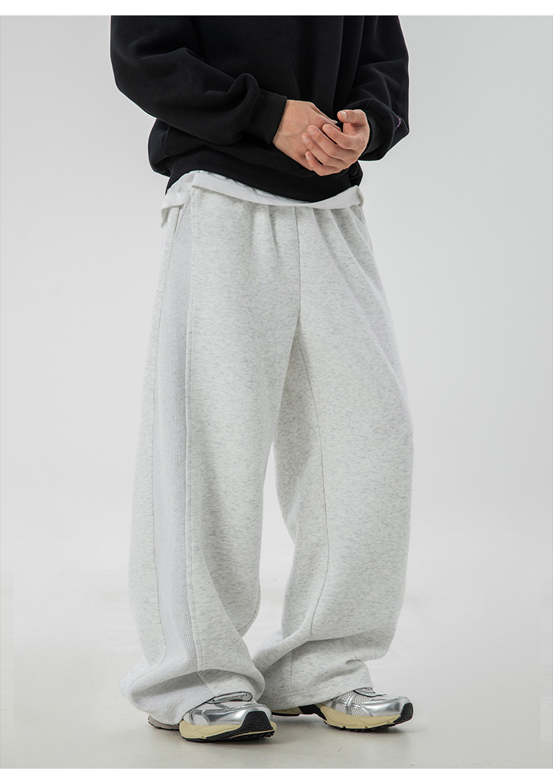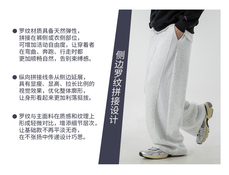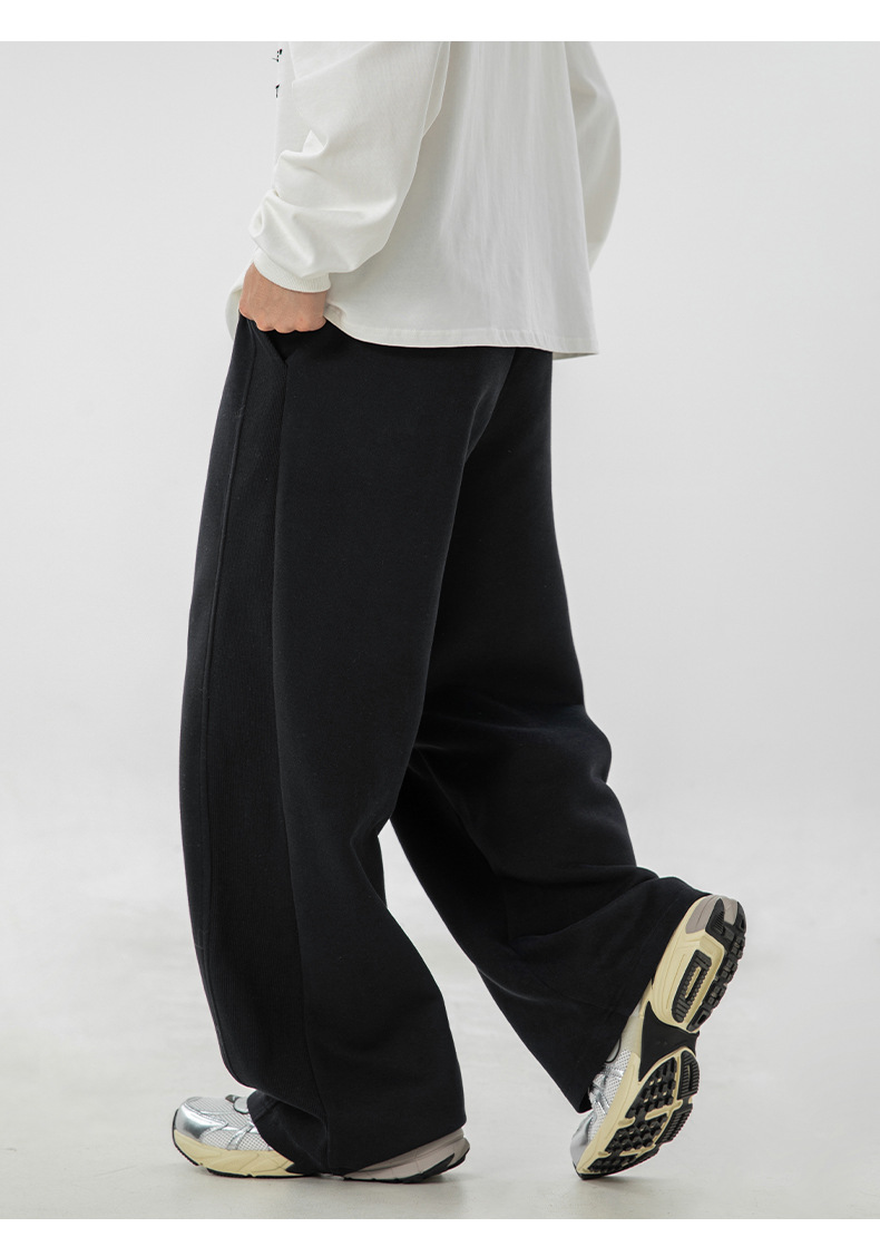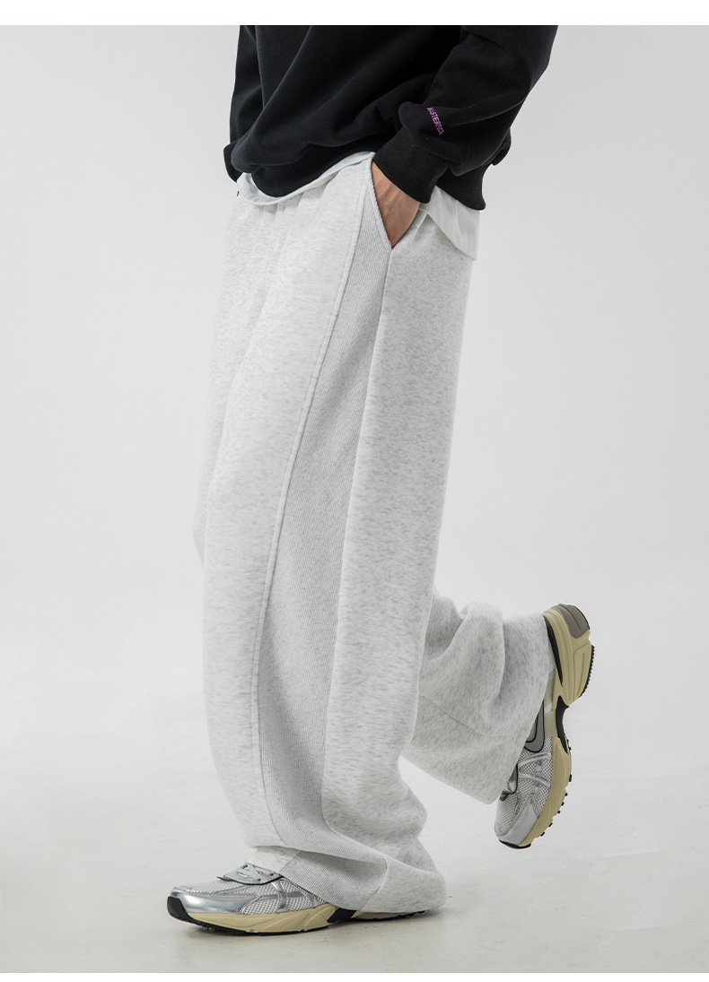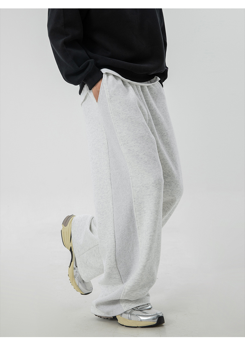 사이드 패널 디자인의 스트레이트 캐주얼 팬츠, 가을 신상 헤비웨이트 루즈핏 드레이프 롱 팬츠, 트렌디 브랜드 스포츠 트레이닝 팬츠 q