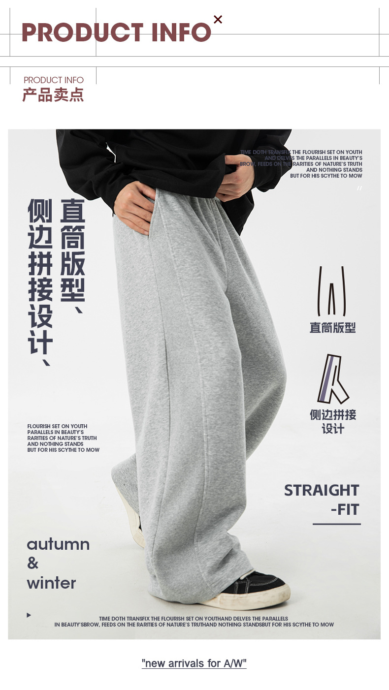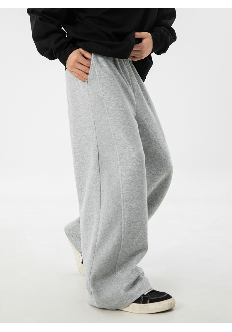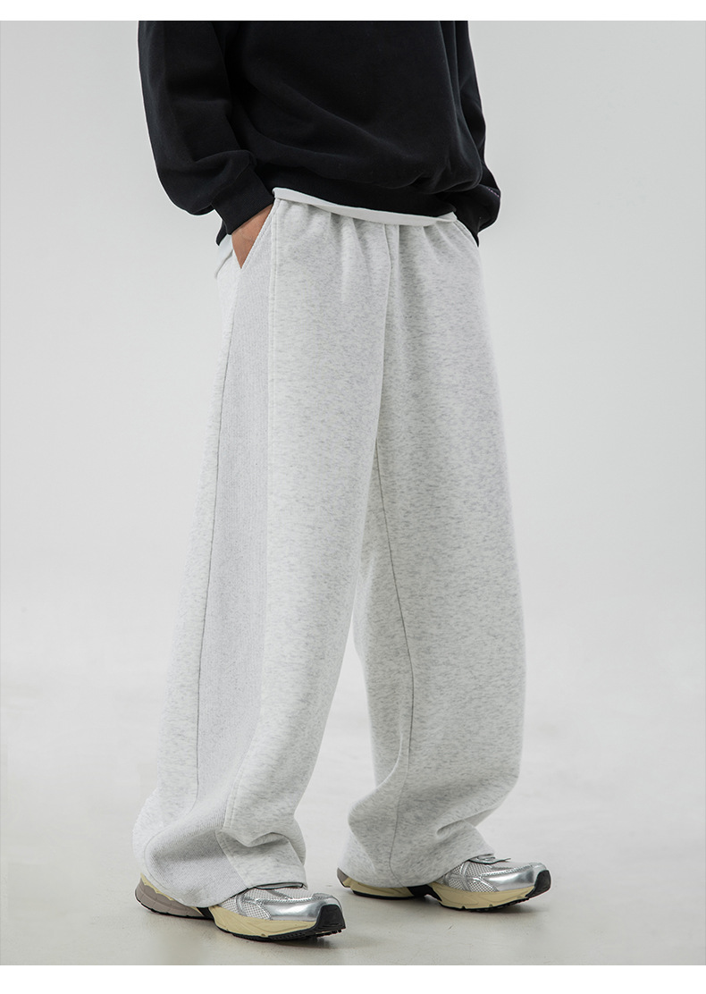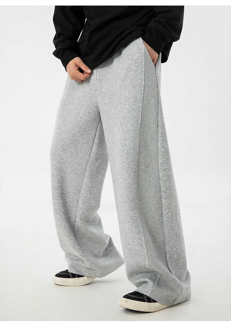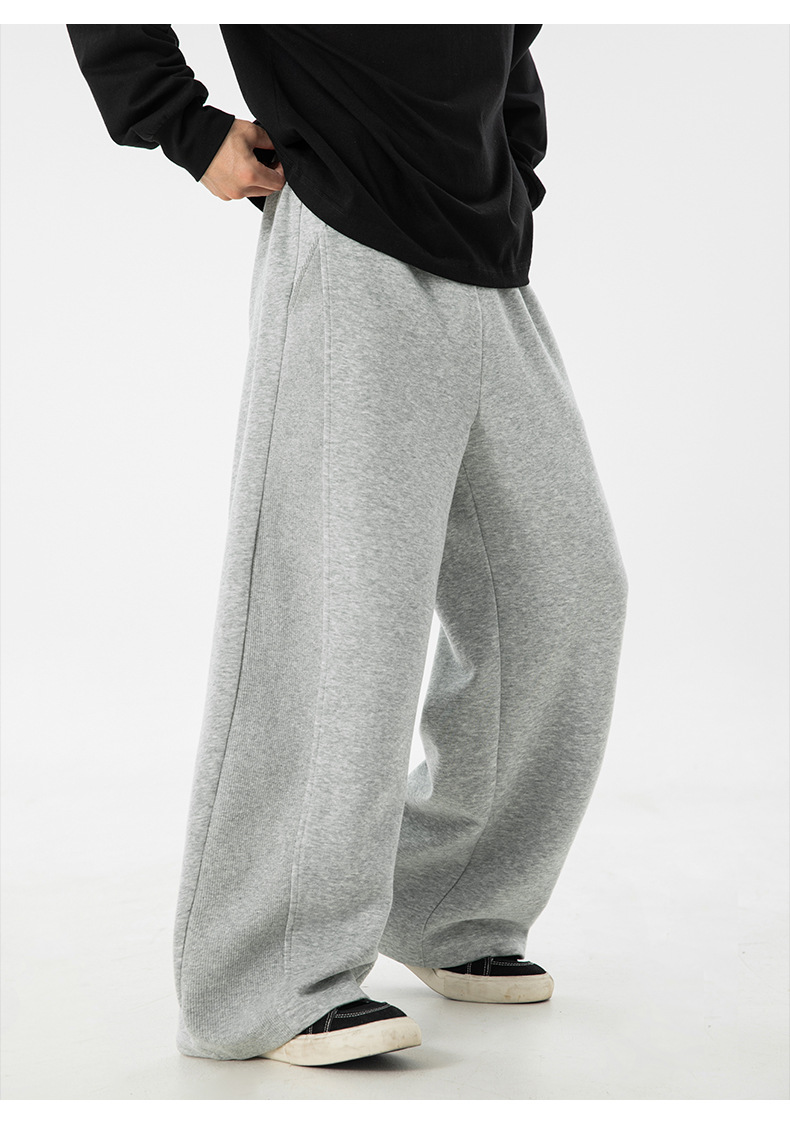 사이드 패널 디자인의 스트레이트 캐주얼 팬츠, 가을 신상 헤비웨이트 루즈핏 드레이프 롱 팬츠, 트렌디 브랜드 스포츠 트레이닝 팬츠 q
