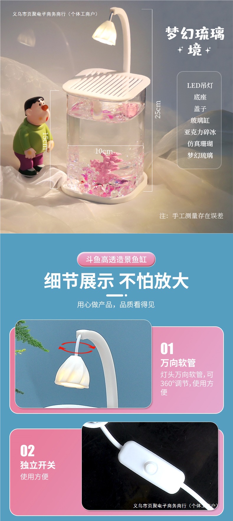 • 몽환적인 유리 둥근 사각형 원통 + 반달 수컷 물고기