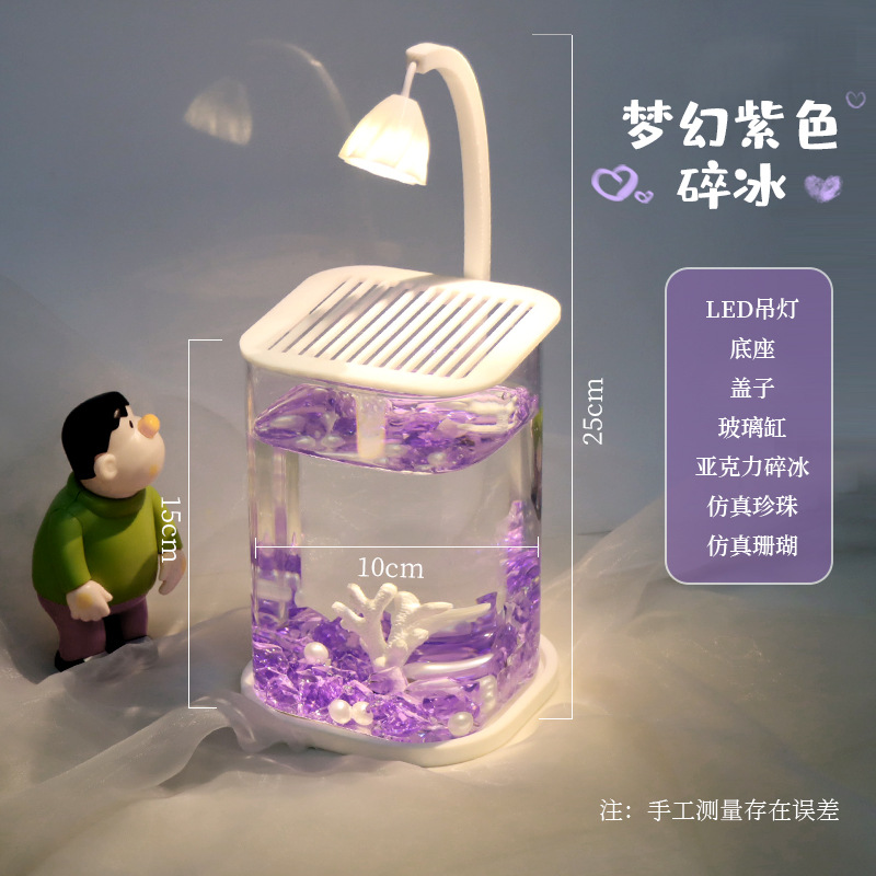가정 거실 느낌을 위한 베이비피쉬 수조, 소형 게으른 인공 조경 유리 수조, 소녀 하트 데스크탑 고가치 장식품스토어 가기