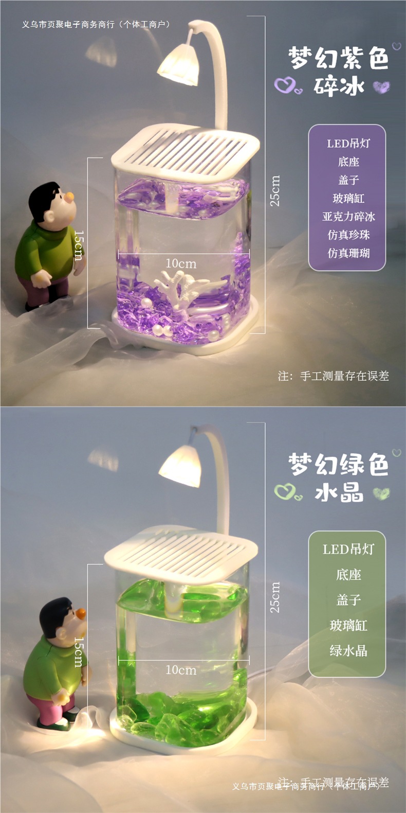 • 아이스 그린 크리스탈 둥근 사각형 원통 + 반달 수컷 물고기
