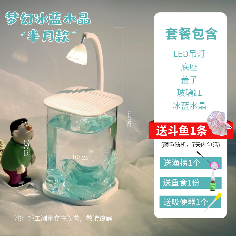 • 아이스 블루 크리스탈 둥근 사각형 원통 + 반달 수컷 물고기