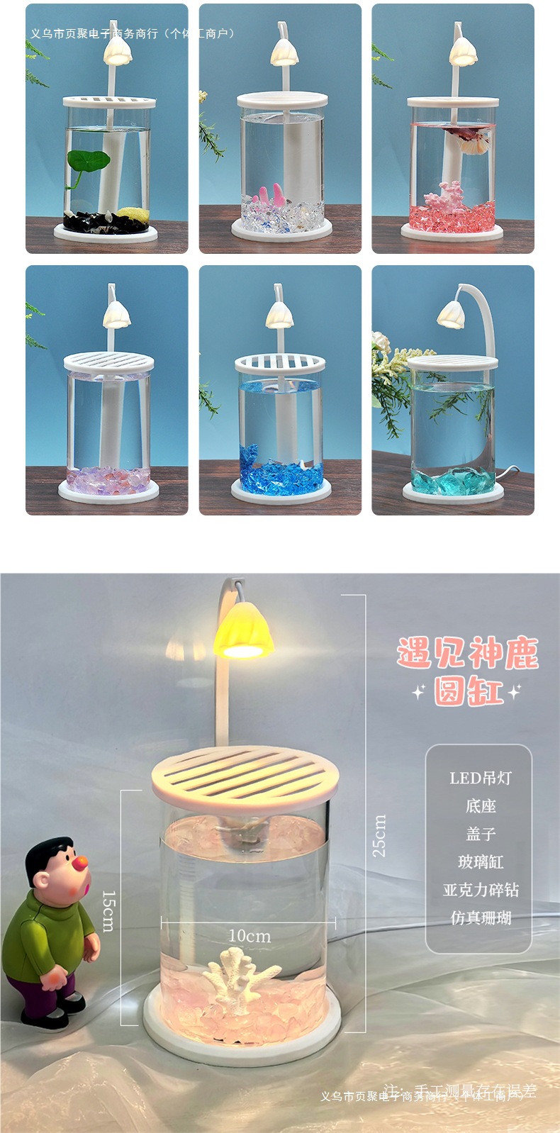 • 조경 산호 바닥 모래가 있는 판타지 유리 원형 탱크