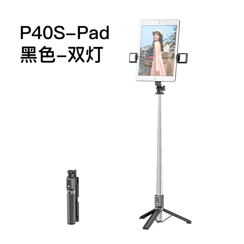 P40L-Pad 태블릿 플로어 스탠딩 삼각대(골프 포함) 셀카봉 휴대폰 블루투스 사진 촬영 듀얼 클립 라이브 방송 스탠드