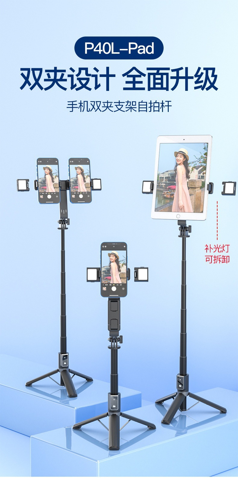 P40L-Pad 태블릿 플로어 스탠딩 삼각대(골프 포함) 셀카봉 휴대폰 블루투스 사진 촬영 듀얼 클립 라이브 방송 스탠드스토어 가기