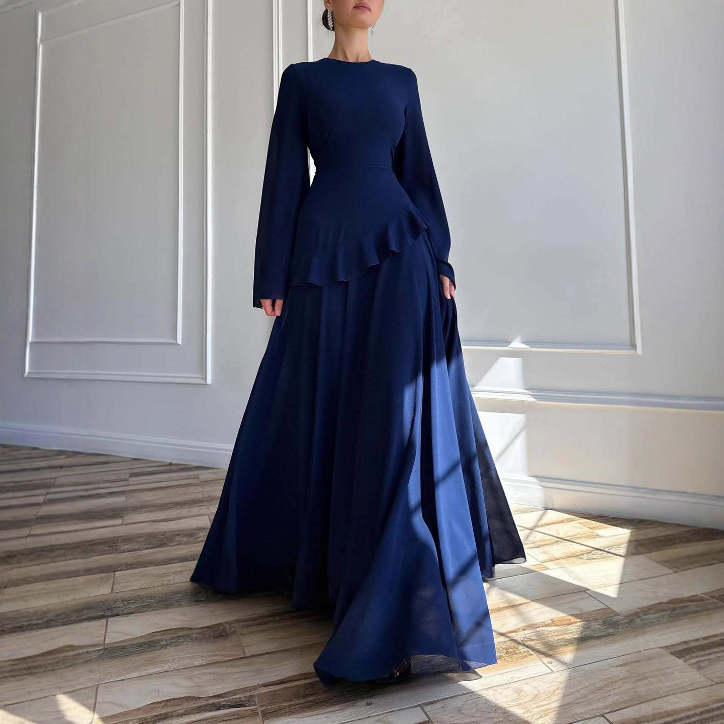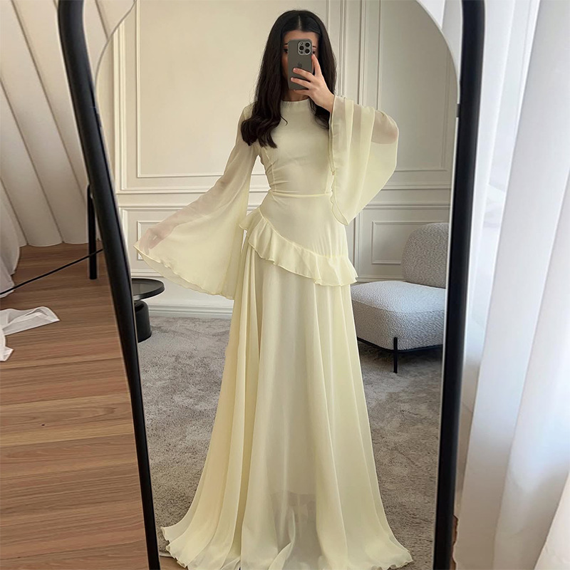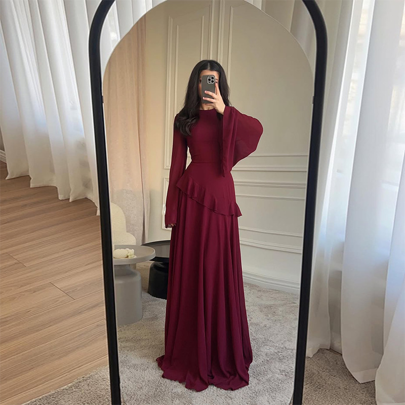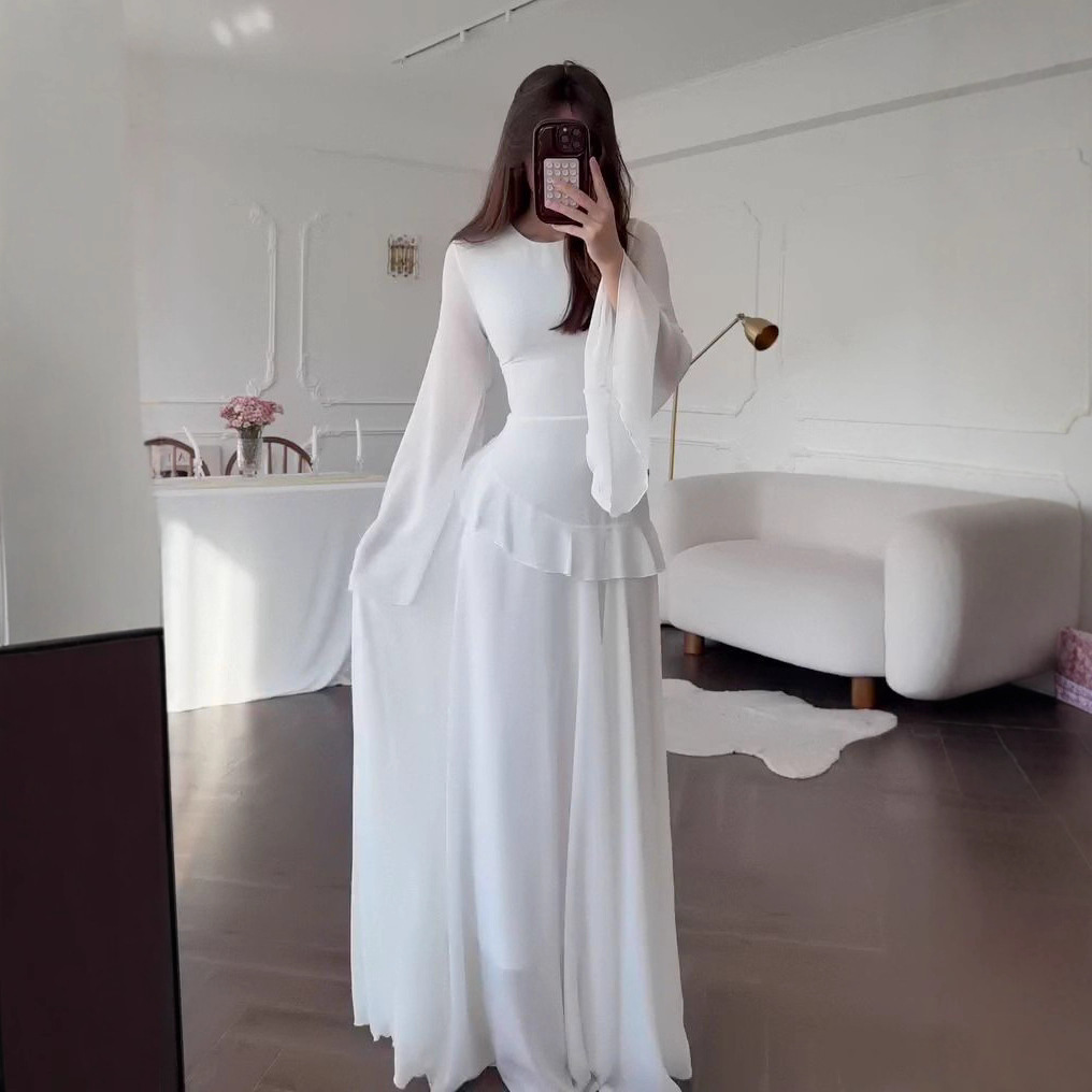 2025 가을 유럽과 미국 아마존 국경 간 대외 무역 새로운 순수한 욕망 스타일 하이 엔드 라운드 넥 슬림 긴팔 드레스