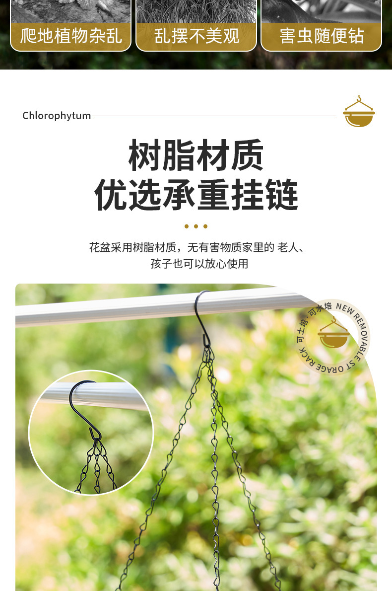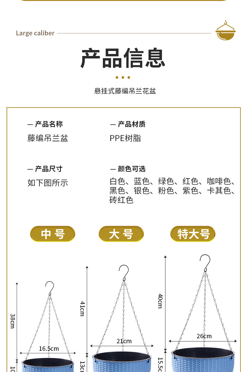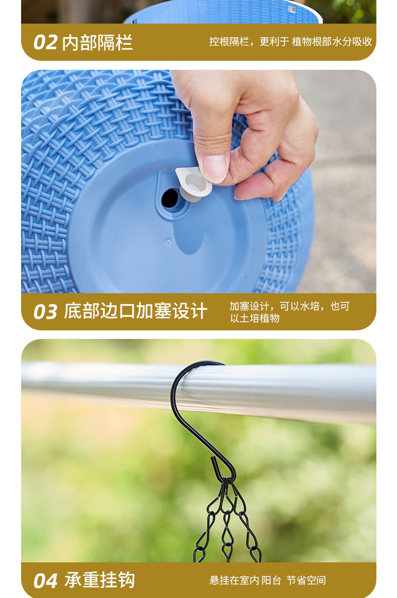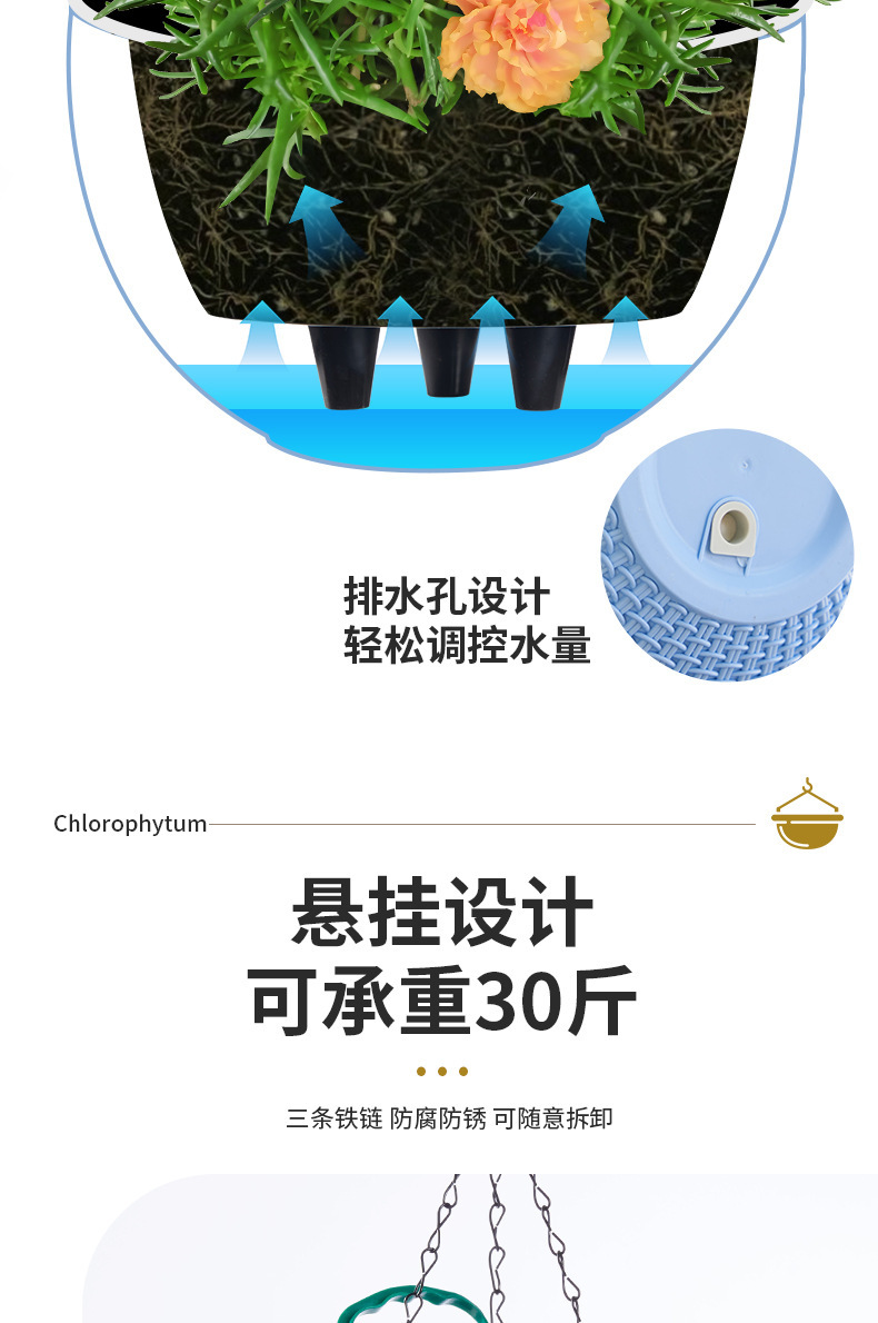 새로운 간단한 모조 등나무 천장 바구니 화분, 가정용 녹색 식물 화분, 천장 난초 화분, 제조업체에서 체인을 제공