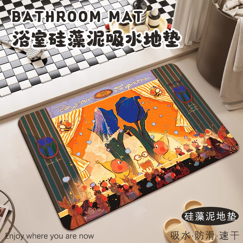 스타맨 부드러운 규조토 진흙 바닥 매트 만화 욕실 카펫 욕실 미끄럼 방지 매트 화장실 문 흡수성 발 매트스토어 가기