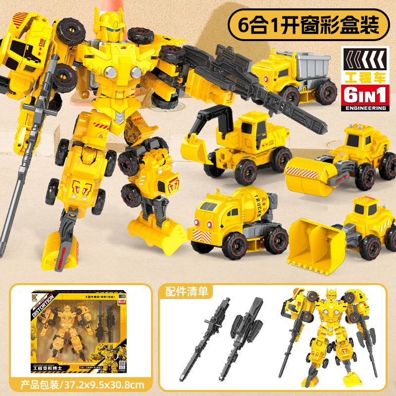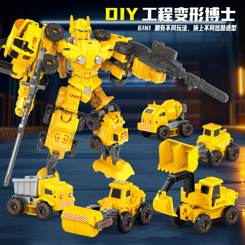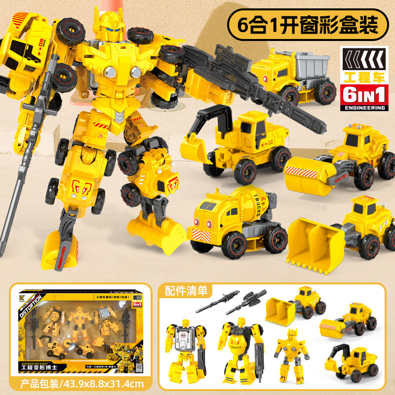 어린이 변형 로봇 엔지니어링 차량 모델 어린이 장난감 관성 굴삭기 소년 장난감 자동차 변형 가능