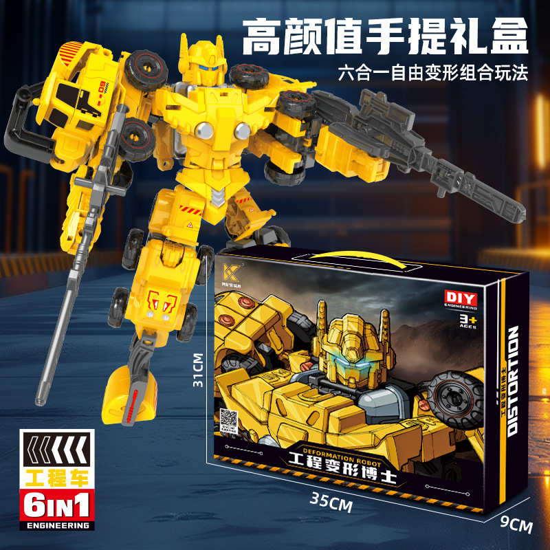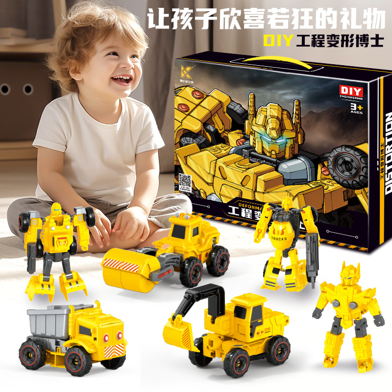 어린이 변형 로봇 엔지니어링 차량 모델 어린이 장난감 관성 굴삭기 소년 장난감 자동차 변형 가능스토어 가기