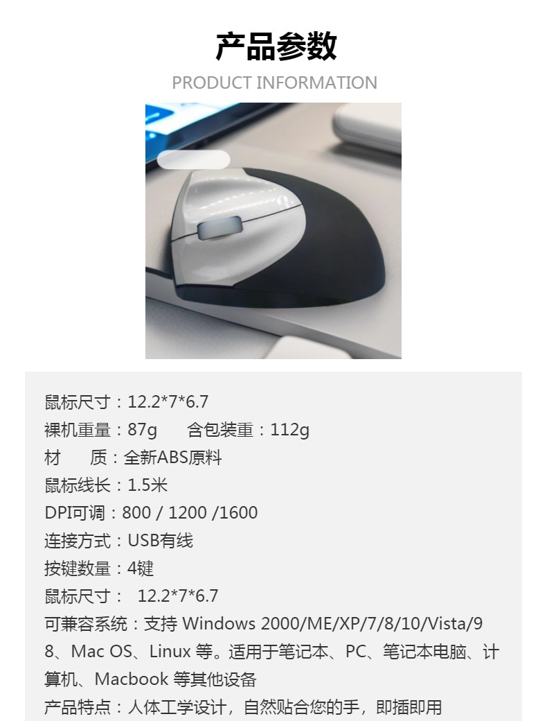 재고 있음 왼손잡이 마우스 세대 수직 마우스 크로스보더 인체공학적 왼손잡이 마우스 왼손잡이 유선 마우스스토어 가기