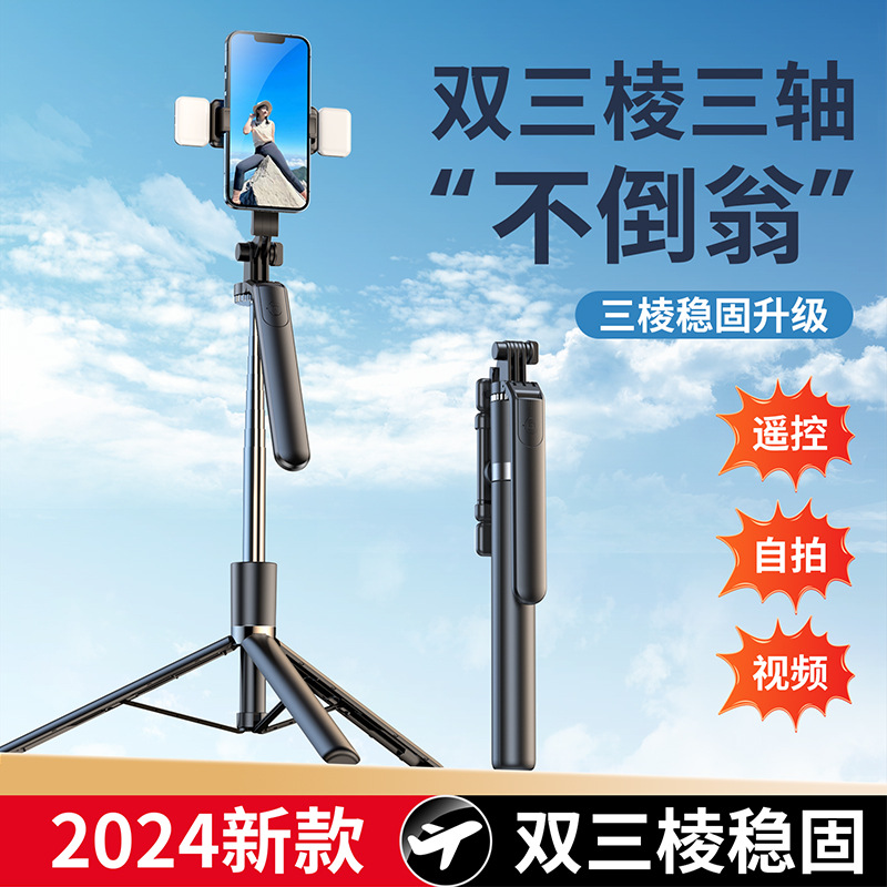 휴대 전화 셀카 스틱 파노라마 촬영 브래킷 연장 막대 1.7m 라이브 스트리밍 삼각대 3축 손떨림 방지 스테디 카메라스토어 가기