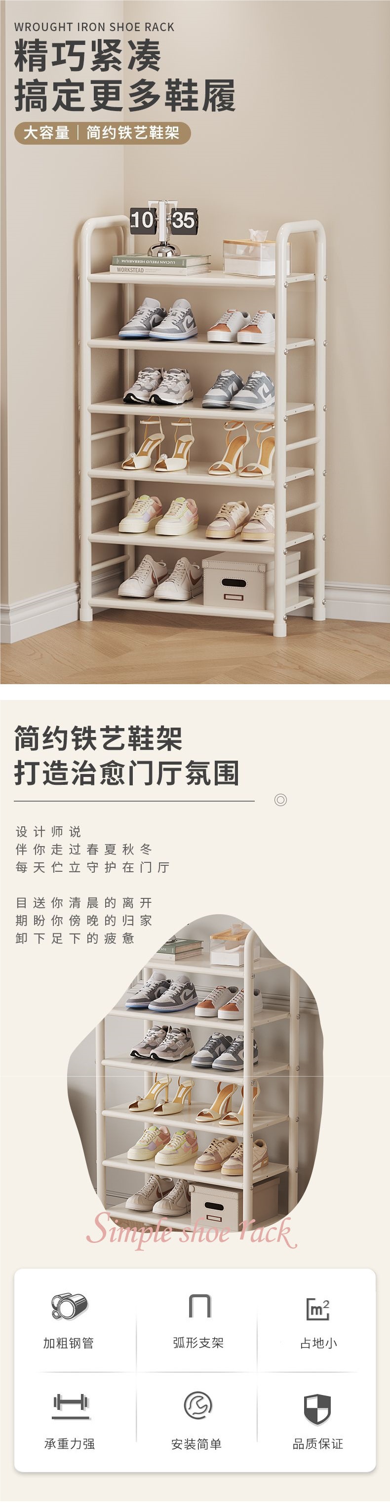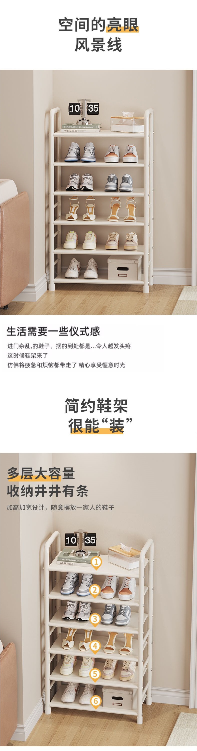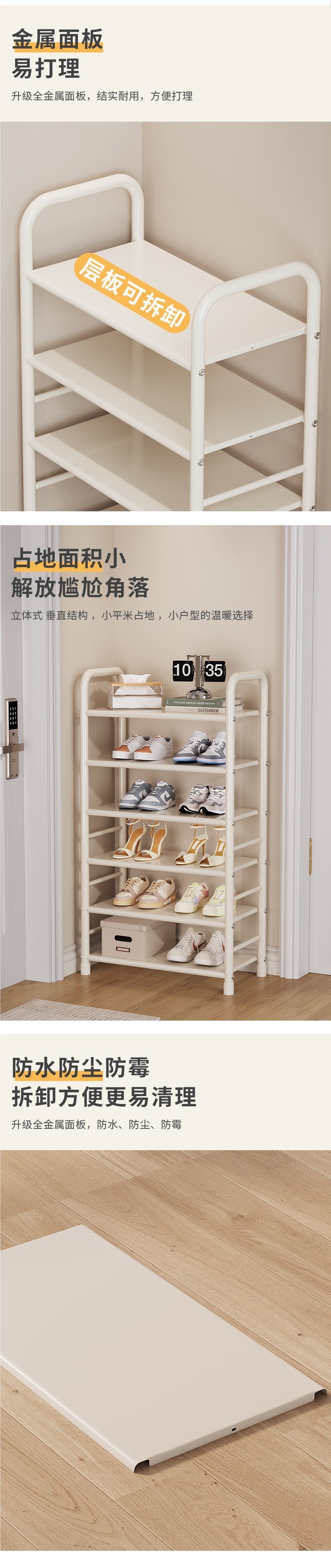 크림 스타일 철 신발장 다층 가정용 소형 공간 절약형 철 선반 기숙사 신발 보관함 무역스토어 가기