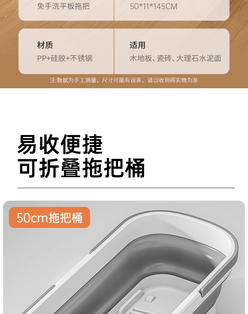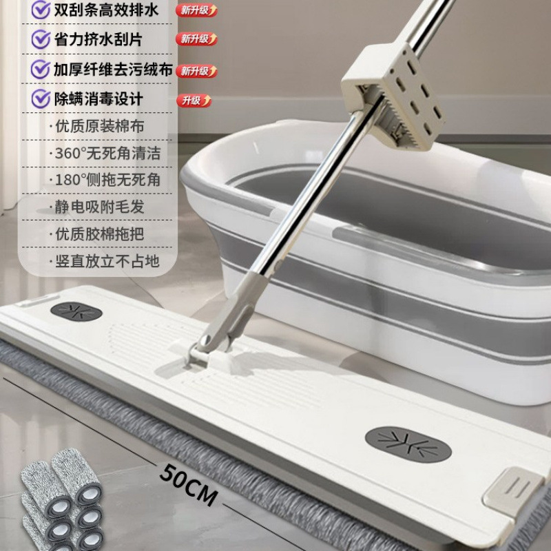 • 접이식 버킷 세트 [스크레이퍼가 포함된 확대되고 두꺼워진 이중 패널] 50cm 통합 걸레 및 스크레이퍼 + 두꺼운 천 4개 및 두꺼운 보강 막대 ✓