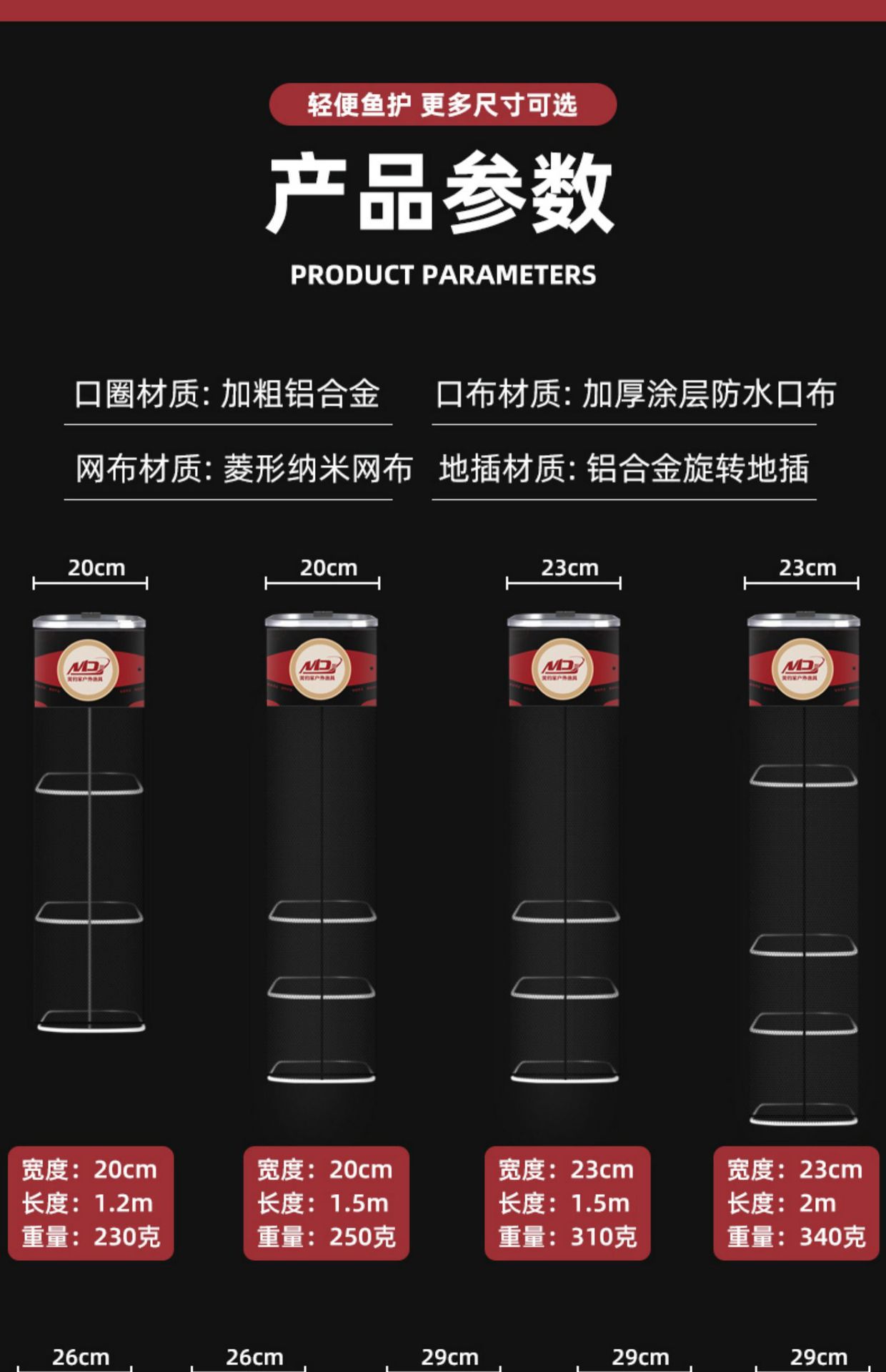 • 26cm* 2m 경량 사각(피시가드만 해당)