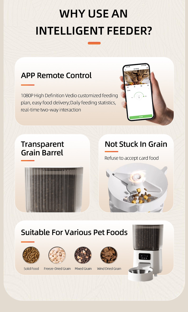 고양이를 위한 애완동물 지능형 급식기, 대용량, 원격 모니터링, 타이밍 및 정량, 카메라를 이용한 고양이 자동 급식 장치
