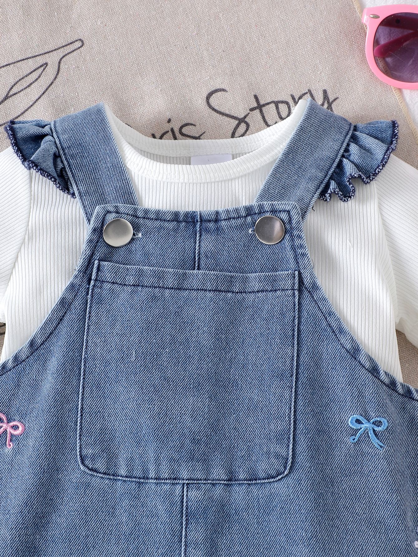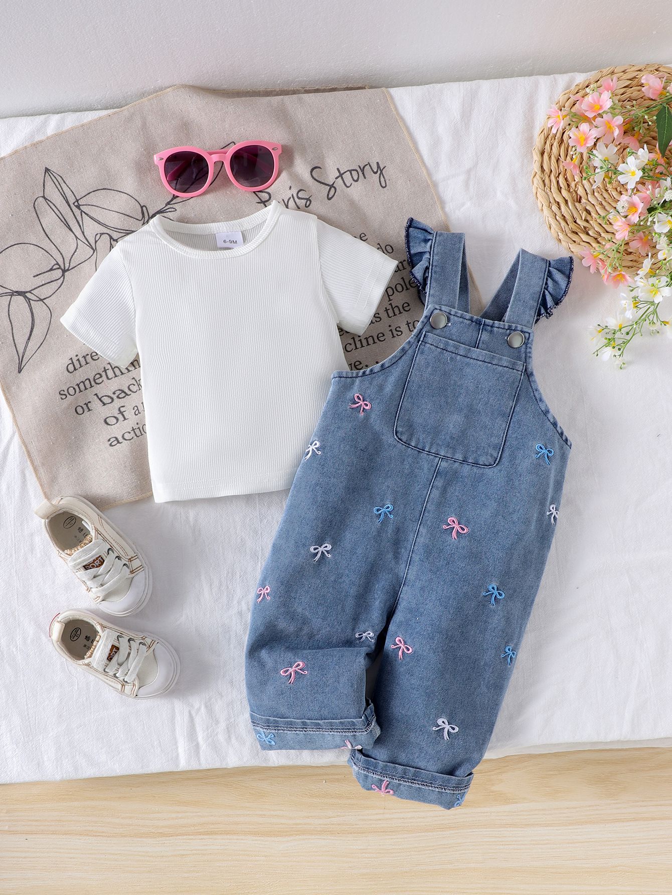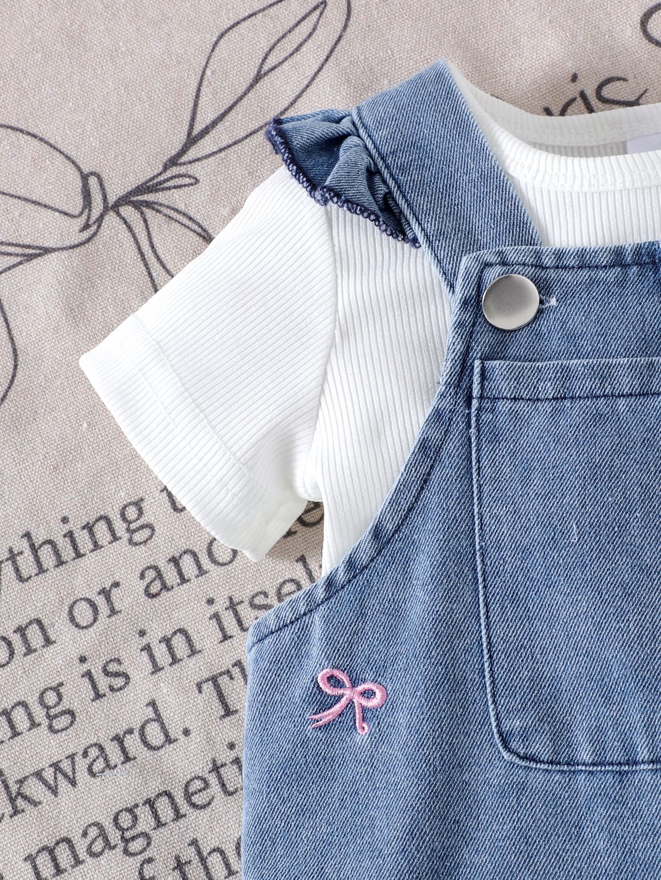 대외 무역 국경 간 유럽과 미국 여름 새 여자 아기 정장 유아 단색 티셔츠 + 데님 점프 슈트 투피스 세트스토어 가기