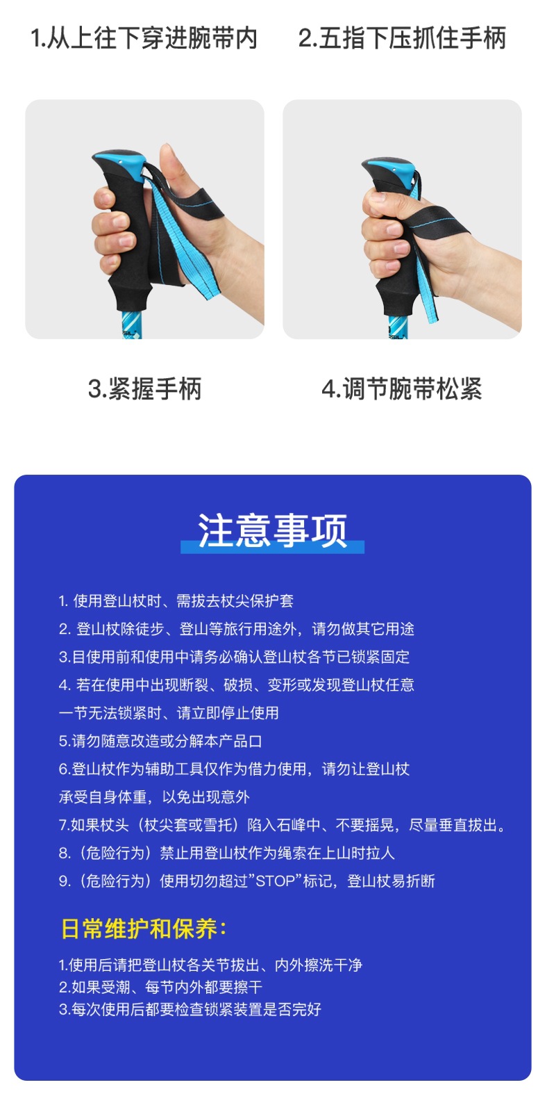• 4개 섹션 텔레스코픽|직선 핸들 블루 50-110cm (충격 흡수 시스템 내장)