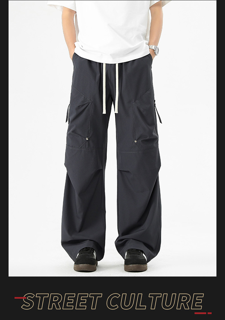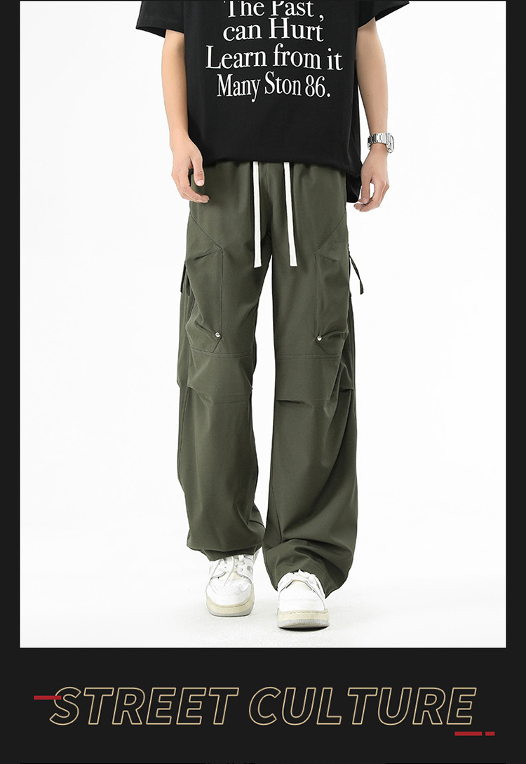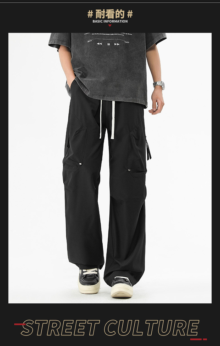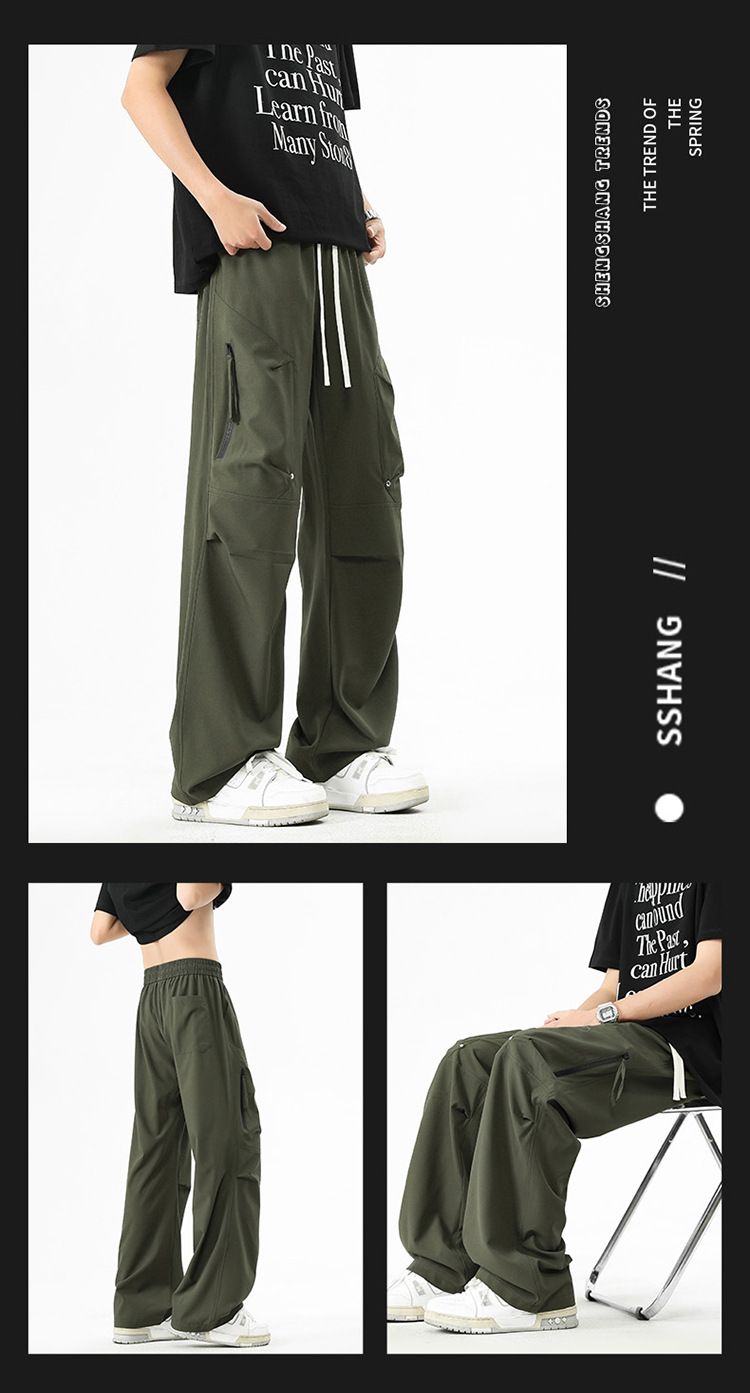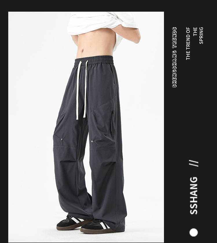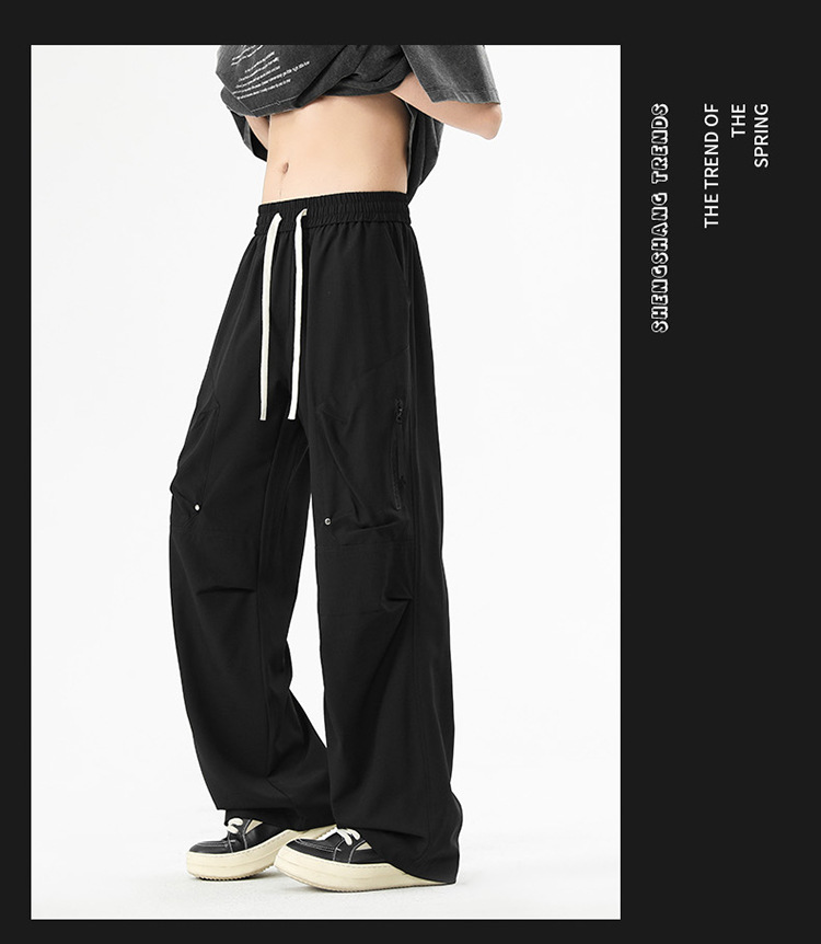 Shanggu 남성 신작 트렌디 브랜드 루즈한 작업복 다용도 스트레이트 스포츠 낙하산 바지 드로스트링 충전 캐주얼 바지스토어 가기