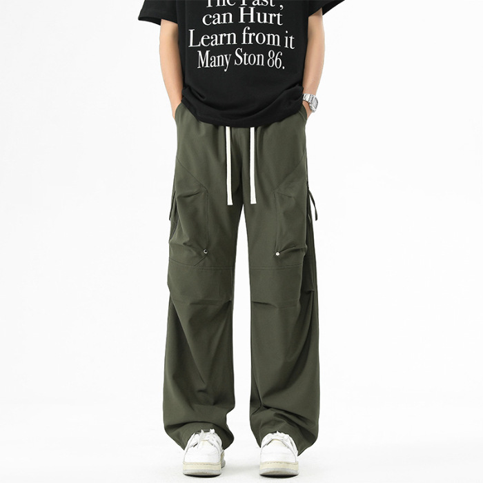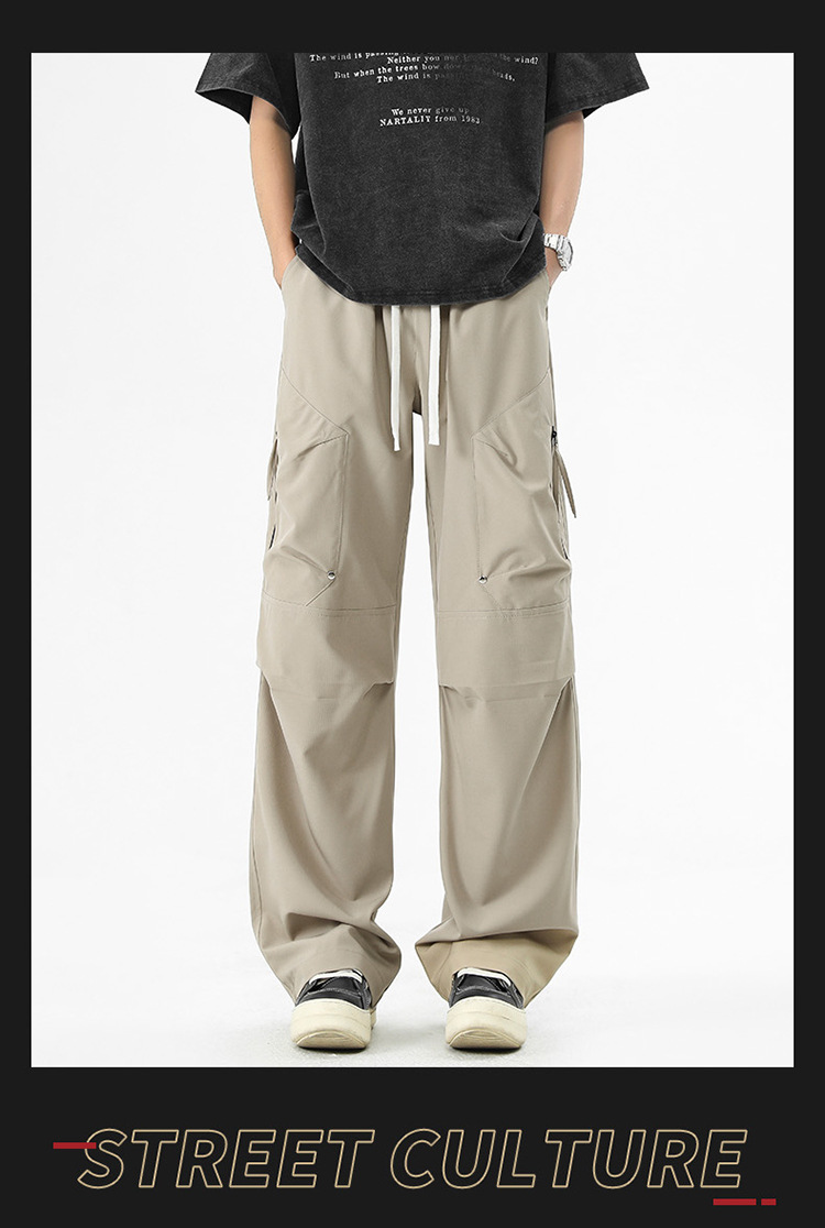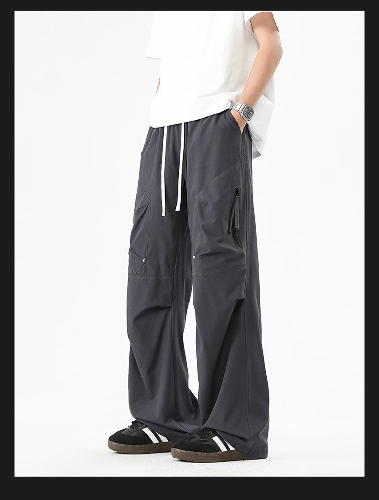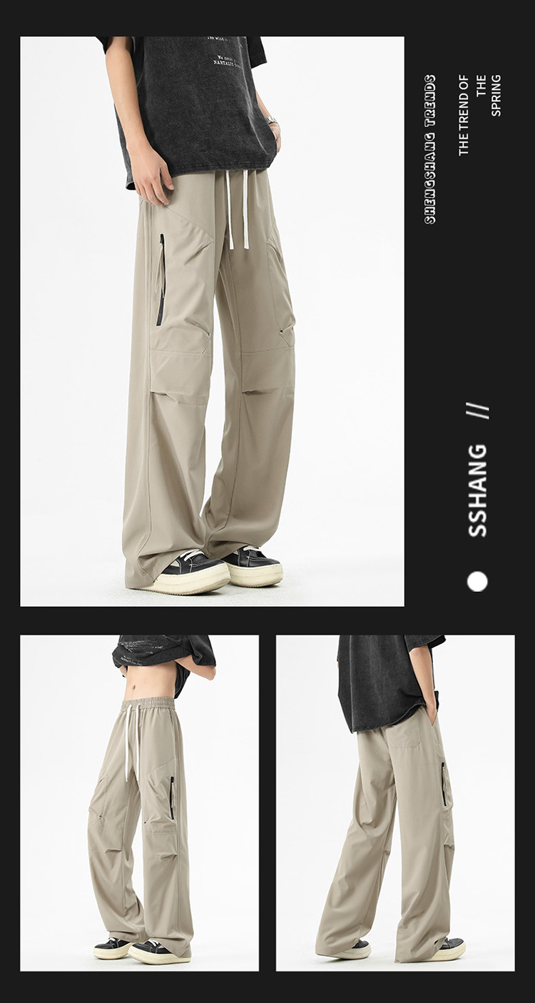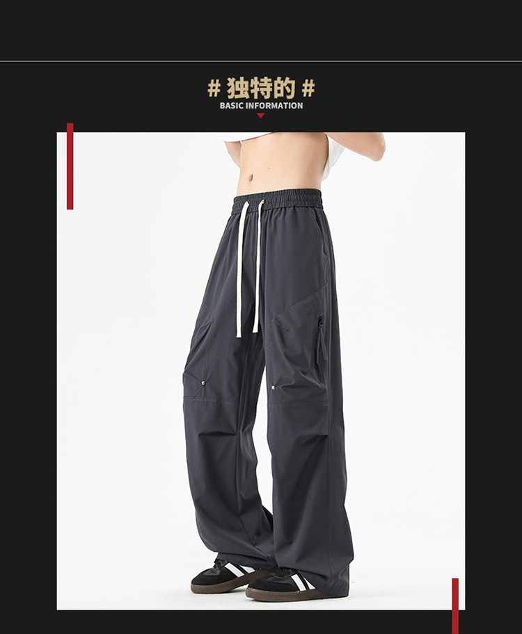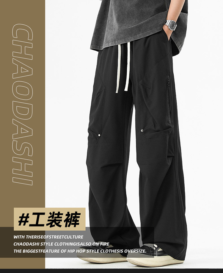 Shanggu 남성 신작 트렌디 브랜드 루즈한 작업복 다용도 스트레이트 스포츠 낙하산 바지 드로스트링 충전 캐주얼 바지스토어 가기
