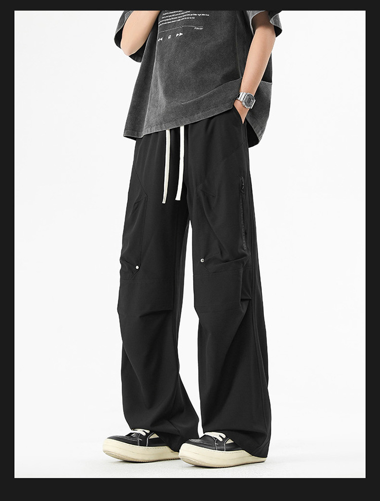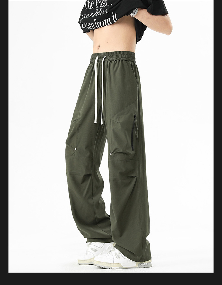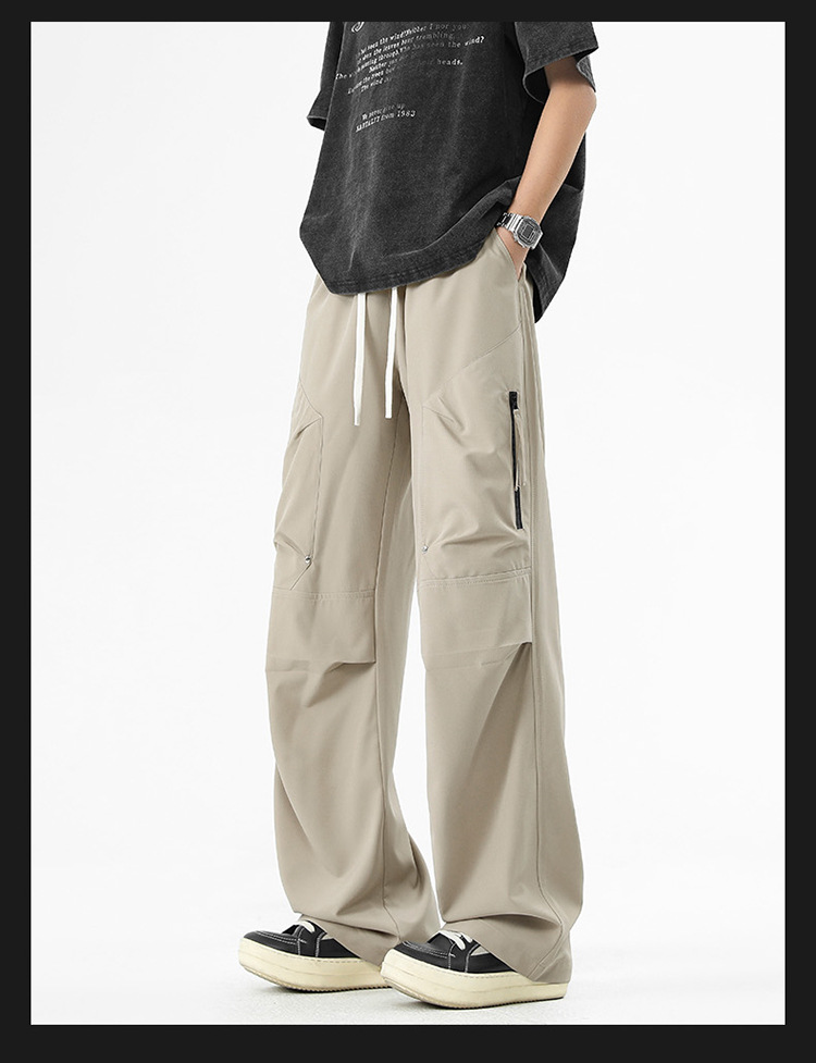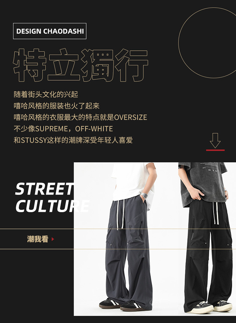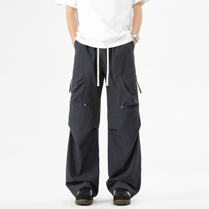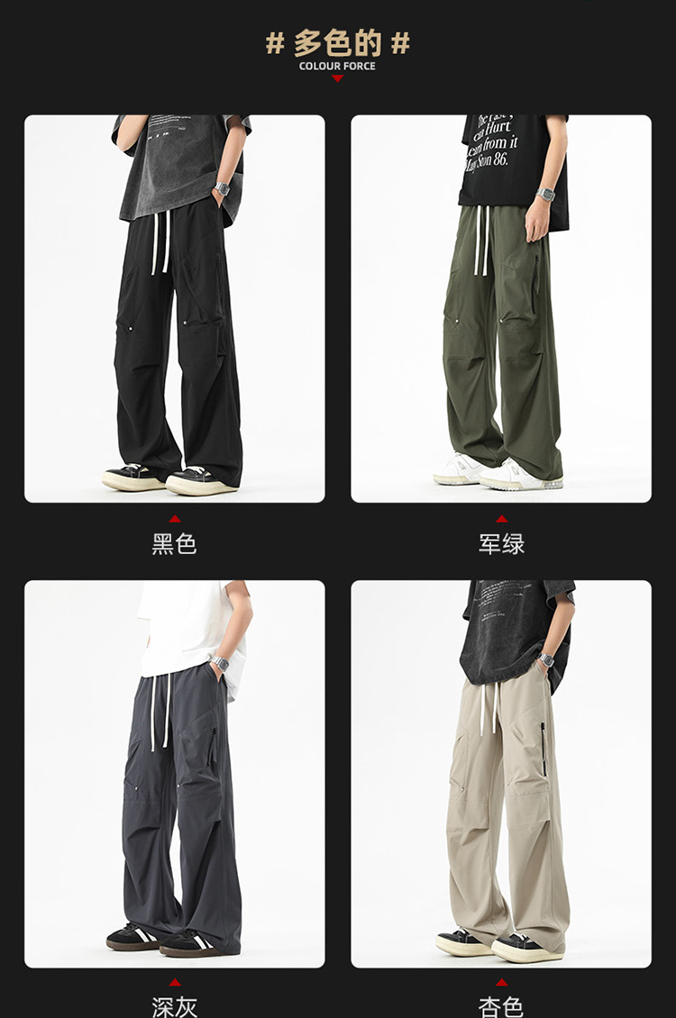 Shanggu 남성 신작 트렌디 브랜드 루즈한 작업복 다용도 스트레이트 스포츠 낙하산 바지 드로스트링 충전 캐주얼 바지스토어 가기