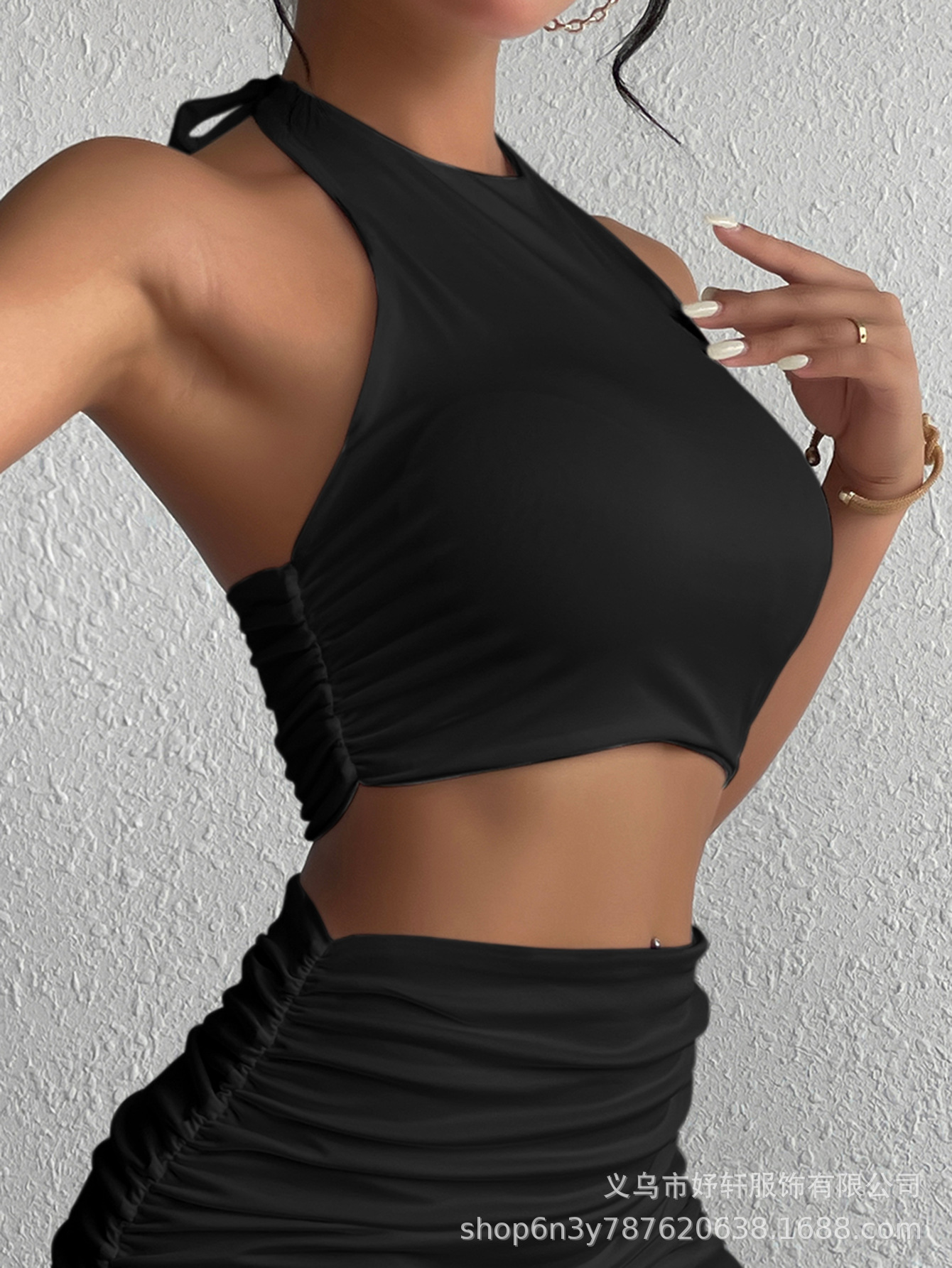 국경을 넘나드는 유럽과 미국의 여름 여성복, 편안하고 캐주얼하며 고급스러운 스커트, 홀터넥, 엉덩이를 덮는 여성용 패션 슈트스토어 가기