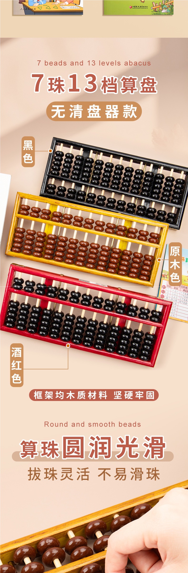 초등학생 2학년을 위한 나무 5구 7구 주판, 13단계 및 15단계 수학 교구, 어린이 학습을 위한 Jiangsu 교육판스토어 가기