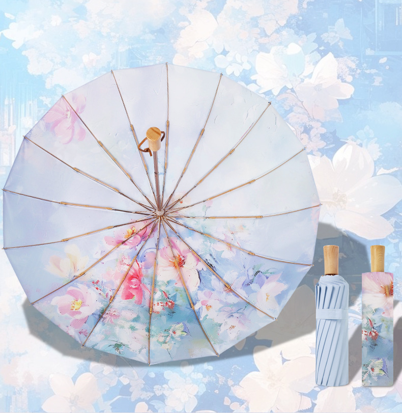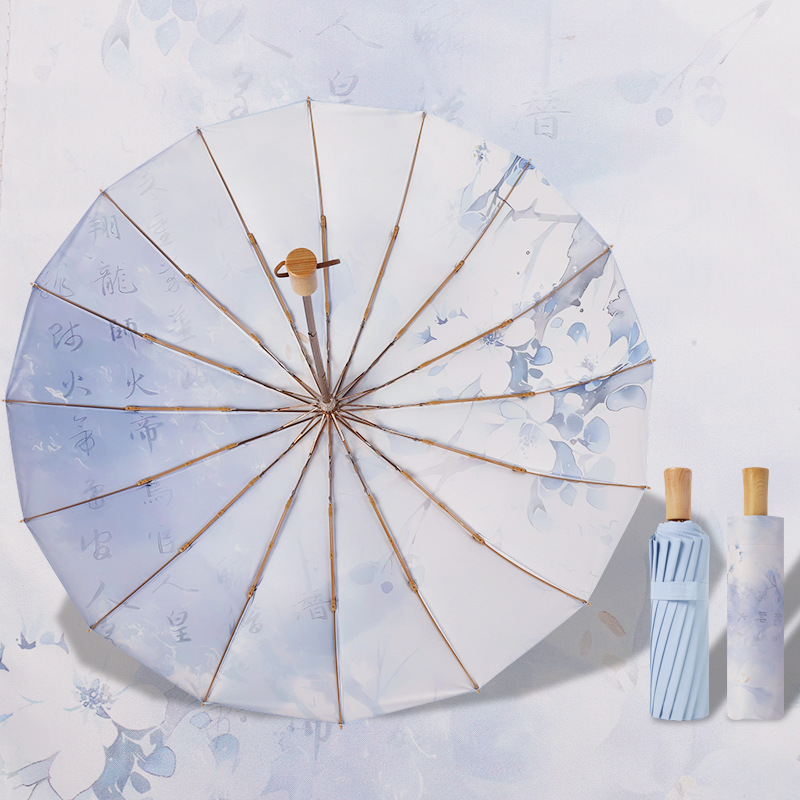 • Blue Snow Poetry Raft-16 뼈 슈퍼 자외선 차단제 컬러 접착제-수동 우산