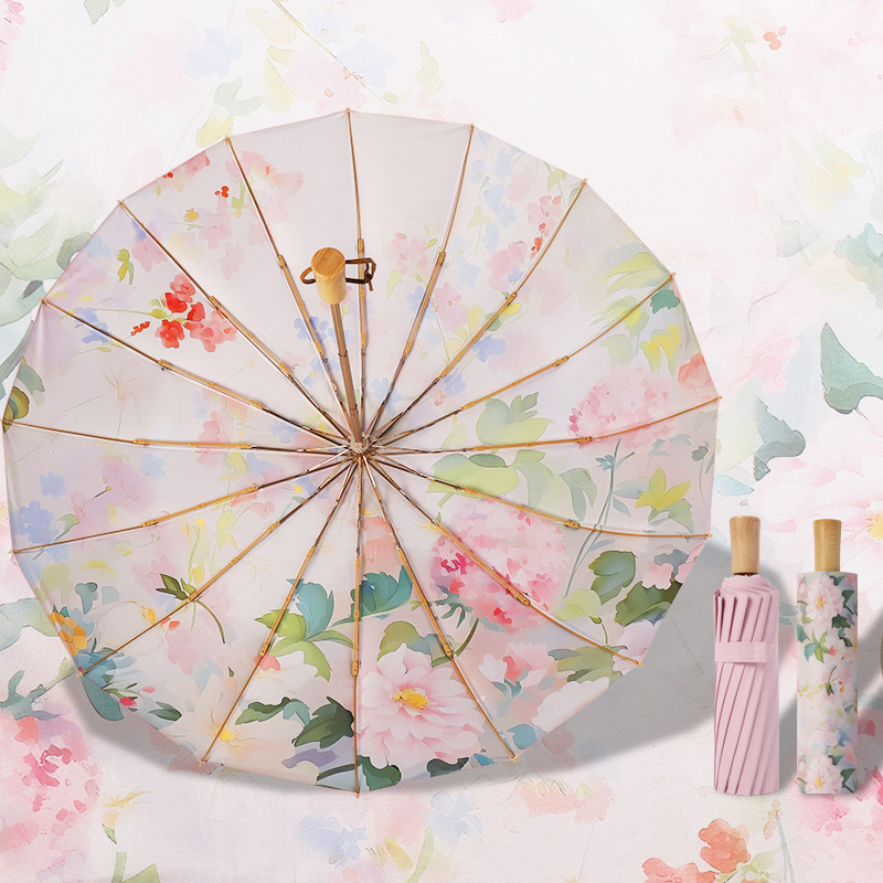 • 핑크 라임 플라워-16본 슈퍼 자외선 차단제 컬러 젤-수동 우산