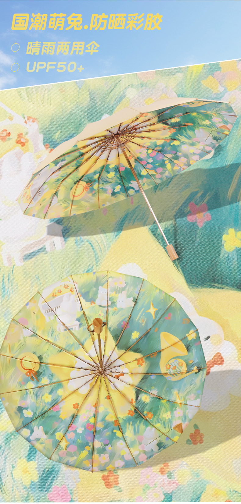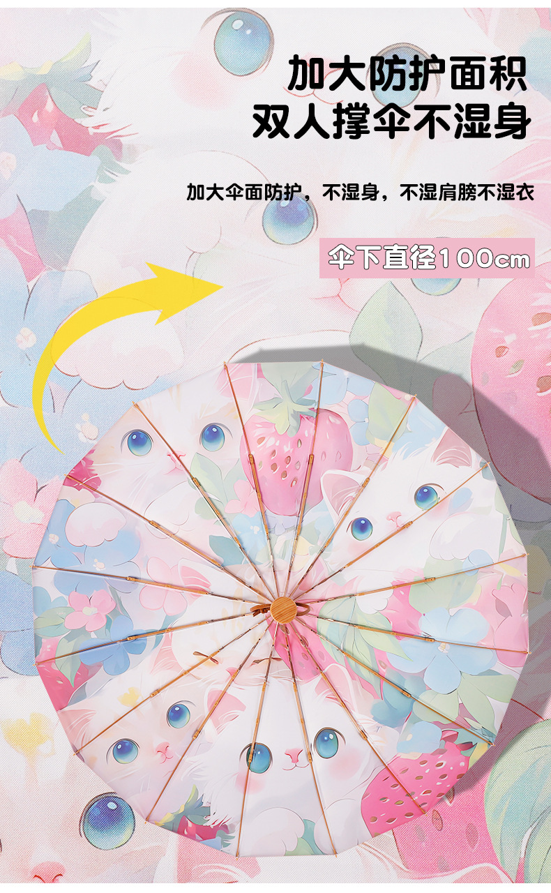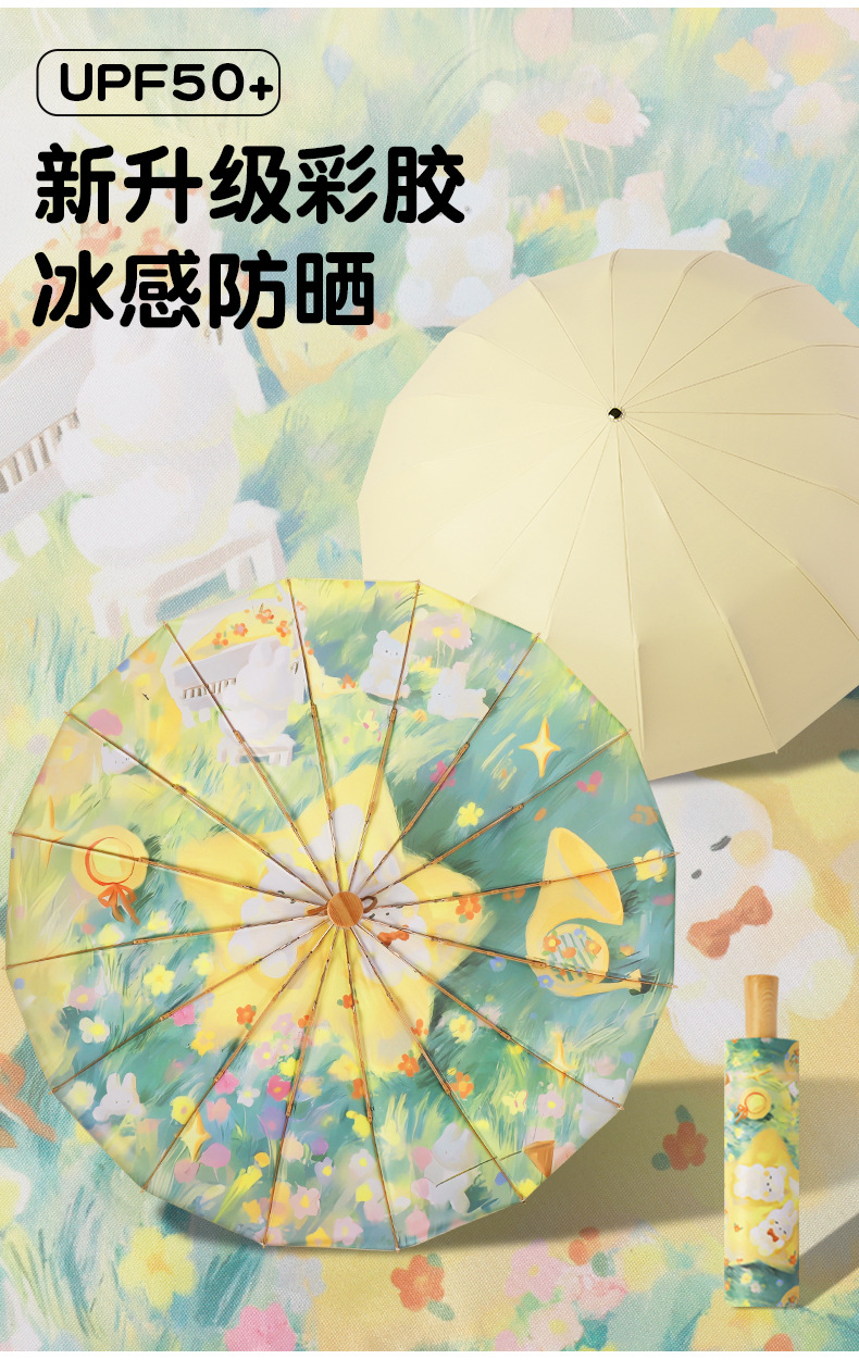 여성용 16본 우산, 자외선 차단 70% off 자외선 컬러 접착제 태양 우산, 비 또는 빛, 강화된 차양 만화 우산스토어 가기