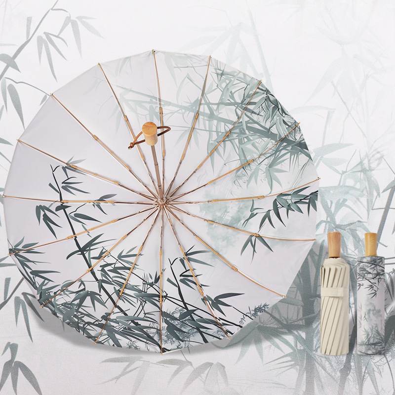 • Bamboo Shadow Elegant-16 Bone 슈퍼 자외선 차단제 컬러 접착제-수동 우산