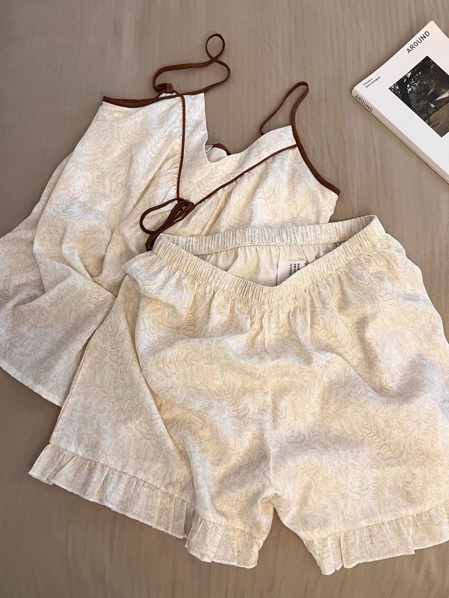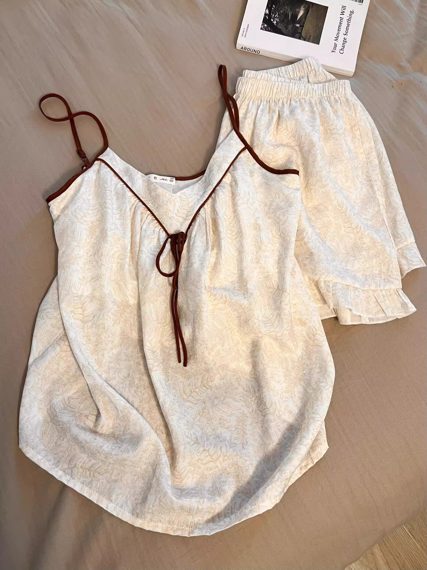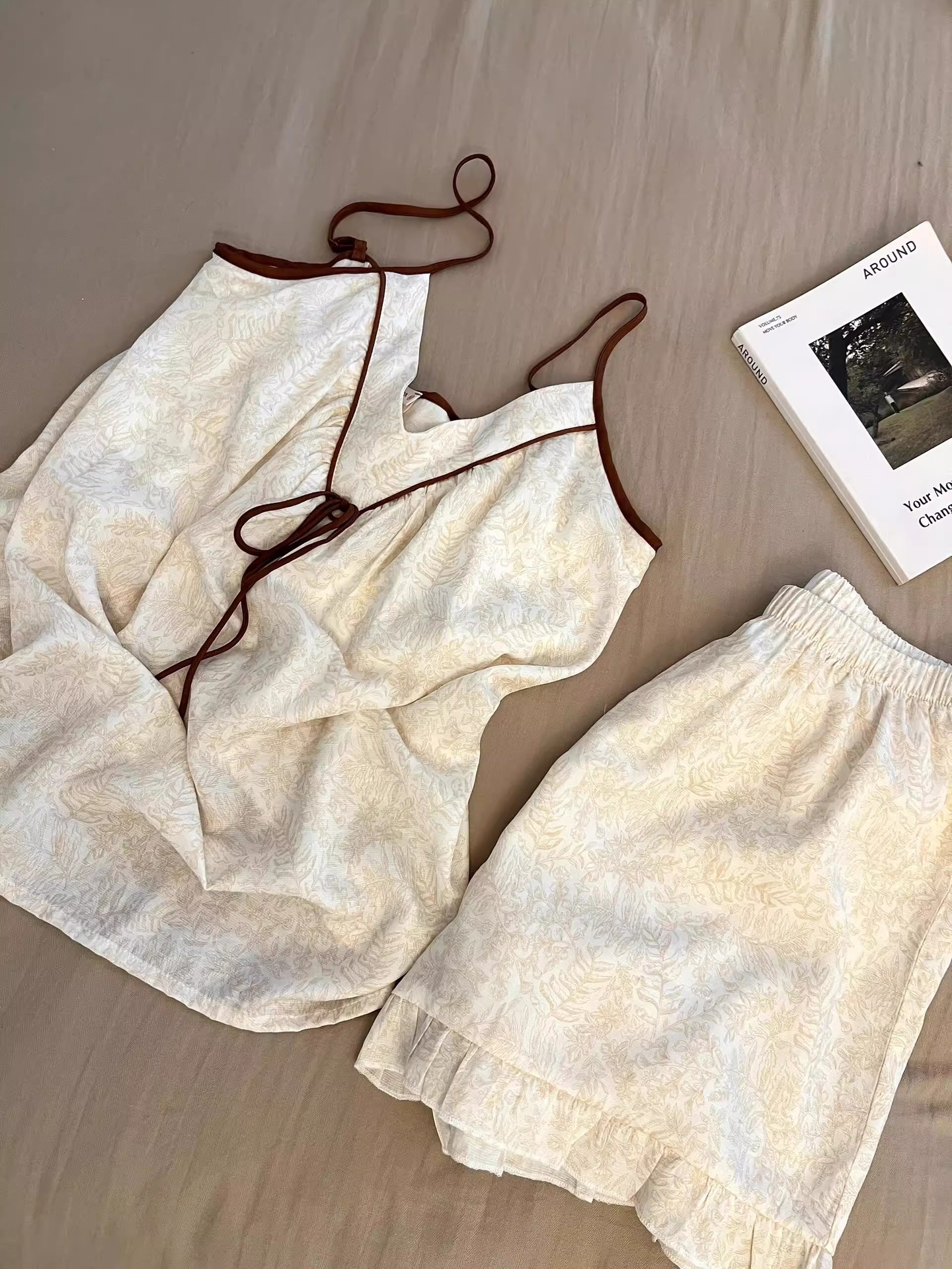 여성을 위한 새로운 중국 스타일의 중국 스타일 잠옷, 가슴 패드가 있는 여름 얇은 서스펜더 슈트, 외부에서 착용할 수 있는 고급 크로스보더 홈웨어